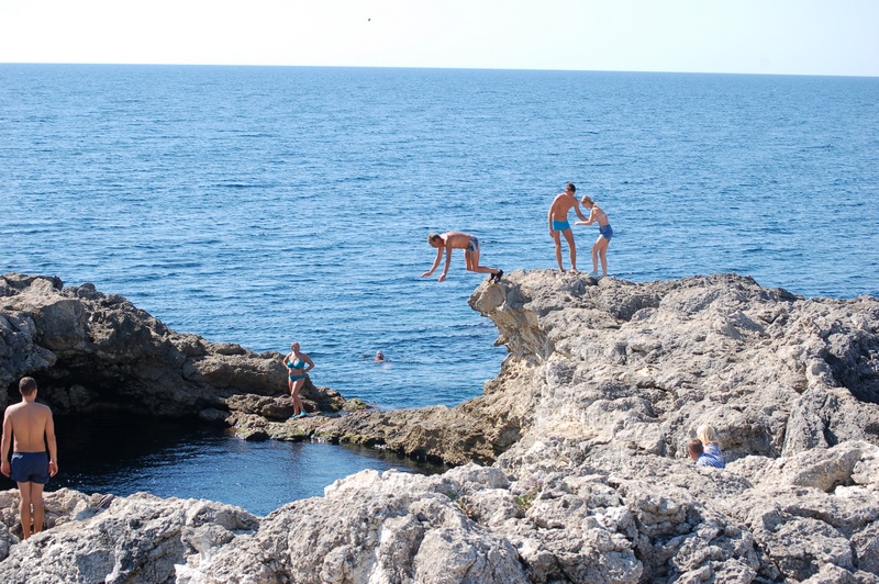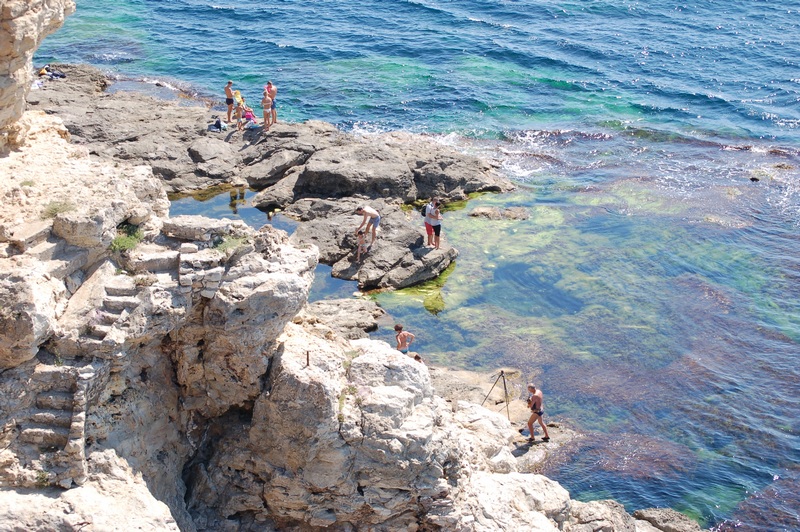 Далее мы спустились вниз по очень крутой лестнице, немного поплавали и посидели в гроте под Рыбзаводом.