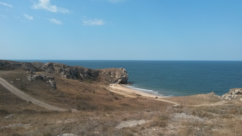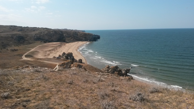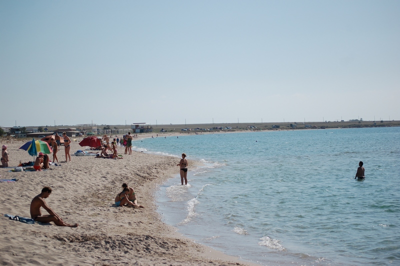 Полоса этих пляжей тянется почти на 50 км и выходит к мысу Казантип. Мы решили, что возможно в следующий приезд проедем весь берег и где-нибудь зависнем на пару дней. А пока, из-за ограничения по времени, свернули в сторону Багерово, проехались по бывшему военному аэродрому (плиты сняты, все перепахано, жаль фоток нет) и его территории.