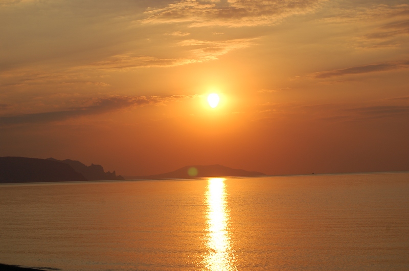 Далее наша дорога лежала в Коктебель, куда мы и прибыли. Сначала заехали на местный завод марочых вин и коньяков. Купили вина, а потом поехали искать место для стоянки и ночевки. Прямо на трассе увидели стрелку с указанием автокемпинг Рай и свернули туда. Уже когда поставили машину и расположились, то поняли, что мы фактически стоим на городском пляже, который начинается сразу за территорий кемпинга. Не смотря на то, что здесь типа огороженная территория, есть туалет, вода, сложилось ощущение, что все это временное и скорее всего когда-нибудь уйдет под застройку, т.к. рядом вся округа застраивается небольшими 3-х и 4-х этажными гостиницами с огороженной территорией. Вечером погуляли по набережной Коктебеля, пошарились по сувенирным лавкам и пр. Даже купили себе домой картину местного художника с видом бухты Провато, так сильно понравилась его манера письма в духе Айвазовского. Но естественно расположение на пляже, фактически в центре курортной жизни говорит само за себя: почти всю ночь было шумно, под утро на территорию кемпинга стали зазжать машины, обслуживающие местные кафе и т.д.
