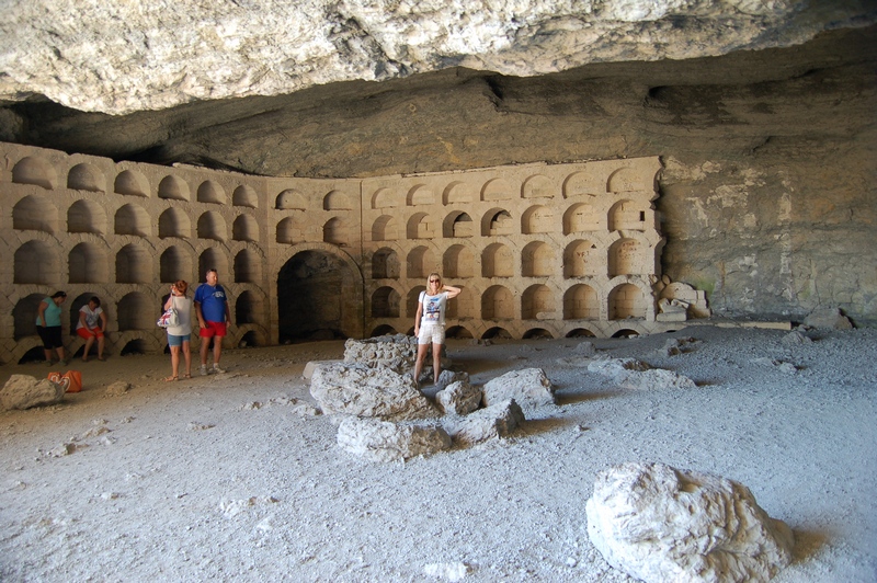 Из-за отсутствия должной подготовки никаких особых достопримечательностей, за исключением различных мемориалов войны, мы не увидели. Хотя проезжали через Белогорск, и я уже потом прочитал в инете, что там есть сафари-парк и красивое место Белая гора. Но ничего, есть повод вернуться. Под Евпаторией в районе Саки, посетили раскопки скифско-греческого поселения Кара-Тобе. В принципе ничего интересного, копают до сих пор. На этом месте греки поставили крепость и назвали ее именем своего тогдашнего царя Евпатор (отсюда и название всей округи - Евпатория). Интересен тот факт, что крепость имела оборонительное значение, позволяла контролировать побережье, и выдержала несколько осад. И именно на ее месте в 40-60-е годы советские военные соорудили наблюдательный пункт, в остатках которого сейчас располагается музей. Видимо военное искусство и соображения тактики одинаковы, что до нашей эры, что в более близкие нам времена. Больше там ничего интересного нет. В общем если не посетите, ничего не потеряете.