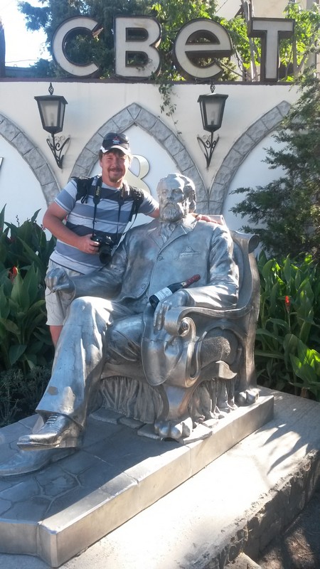 Естественно не обошлось без посещения фирменного магазина завода шампанских вин "Новый Свет". На экскурсию к сожалению мы не располагали временем, да и за рулем как-то не очень идти на экскурсию с дегустацией (помню свои ощущения от посещения Абрау-Дюрсо). Но фирменной продукции на пробу взяли с собой. На прощание с Новым Светом пообщались с князем Л.Голицыным.
