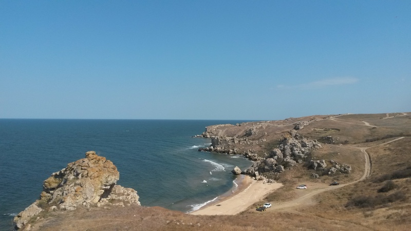 Далее наша дорога лежала на запад Крыма. Еще дома, планируя маршрут, было принято решение сначала проехать на запад Крыма, отдохнуть в районе мыса Тарханхут., а затем уже, на обратной дороге, двигаться по ЮБК, и в зависимости от оставшегося времени, посвятить осмотру достопримечательностей побережья. На решение ехать на запад повлияла тема с форму "В августе в Крым" и в частности мнение нашего соконфетника и теперь моего друга Василия aka VAZ. При этом, я безмерно благодарен Василию и его жене Ирине, за те несколько дней, что мы провели вместе, но об этом чуть позже.