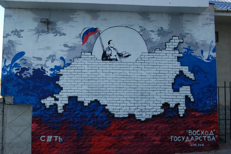 Но в общем наверное это сейчас самый патриотичный регион в России. Вот показательные фото: одно сделано в районе бухты Каспель, второе в Севастополе.