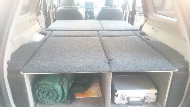 Для сна переделал ту часть, которая ложилась на сиденья. Сделал по типу съемного экспедиционного модуля, который можно использовать как со сложенными сидениями, так и вообще без них, для увеличения объема. В поездке у нас была убрана левая часть заднего сидения и стационарно стоял такой модуль. Спать было удобно, ничуть не хуже чем в палатке. На перегонах спали именно в машине. От гнуса на задние двери надевали москитные сетки.