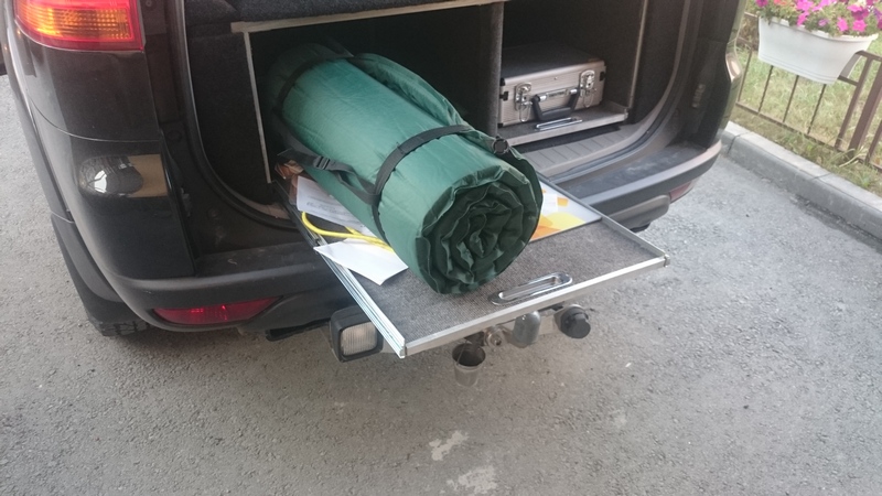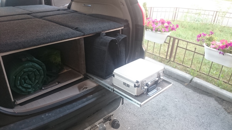 Ну и напоследок немного о подготовке автомобиля к поездке. Так как планировалось полуавтономное путешествие, оборудовал машину как смог. У меня давно уже стоит спально-багажная система от Димы Скитальца, только по основному назначению как спальник использовалась очень редко. Перед поездкой переделал. Уже давно убрал ящик слева (считаю его не удобным), сделал выкатную полочку. Справа тоже сделал выкатную полочку. Но в одной из поездок показалось удобнее использовать ее как столик. Однако при этом мешали вещи на ней. Поэтому буквально перед поездкой сверху сделал стационарную полку. И выкатная полка стала как столик (это видно на некоторых фото в теме).