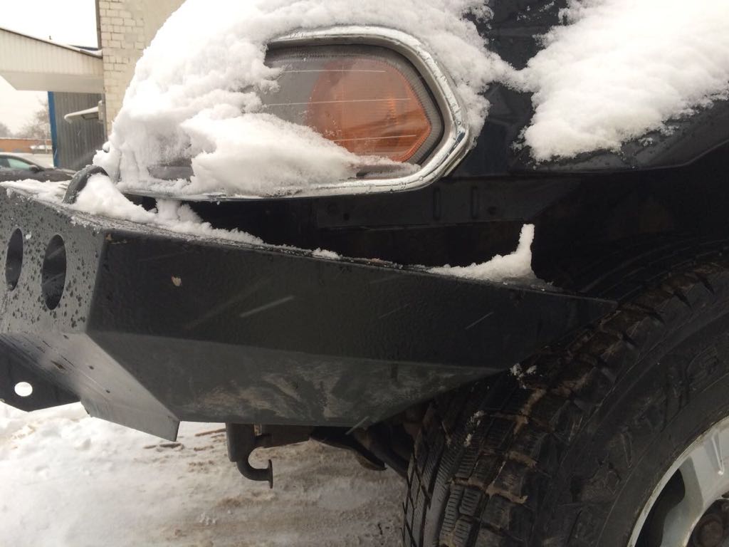 Результат- деформация штатных подпятников на раме и бампер "винтом".