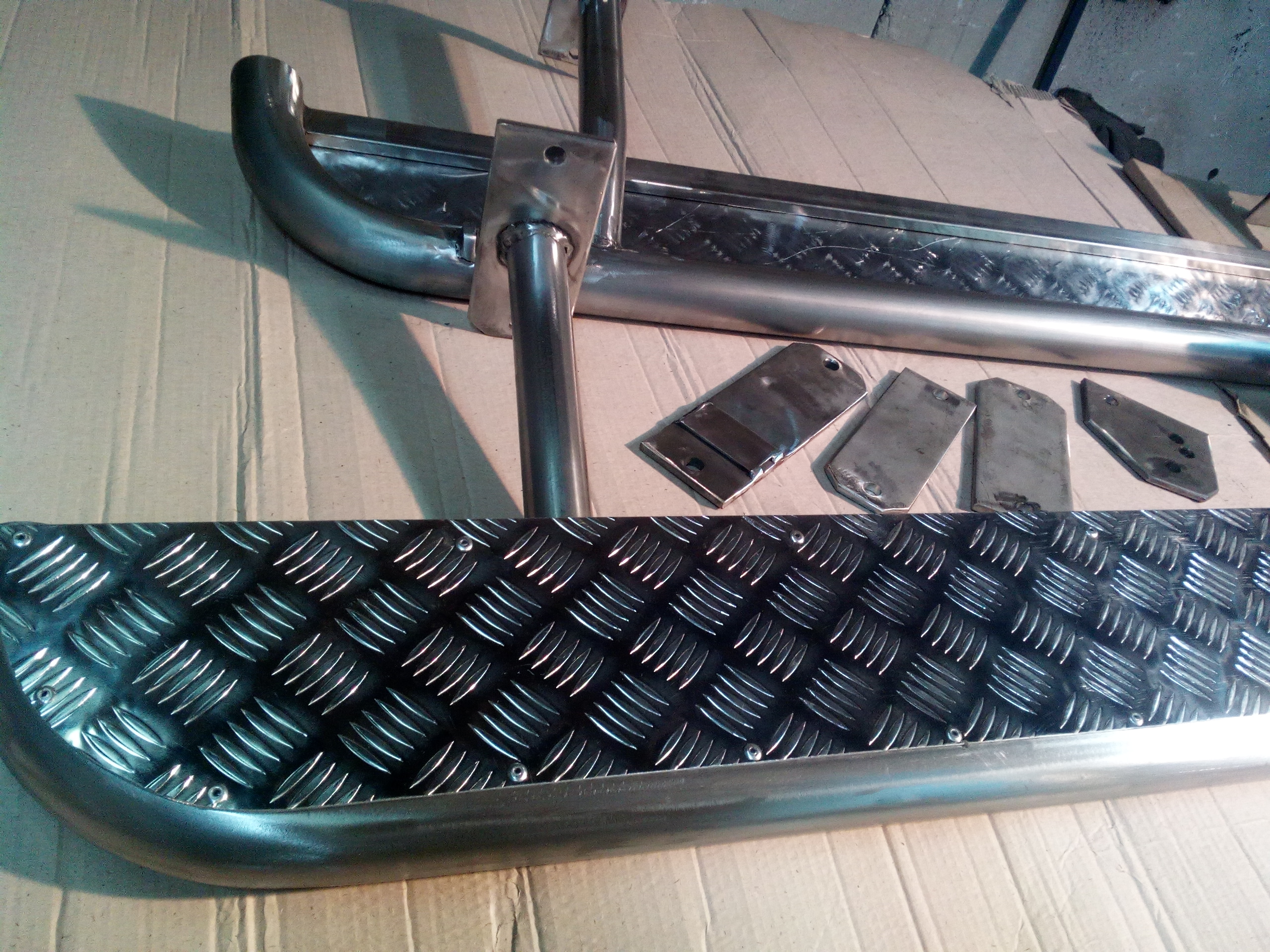 Пороги,выполнены из тех же "толщин",что и "мои" стандартные силовые пороги на НМПС,только из нержавейки 304-ой.