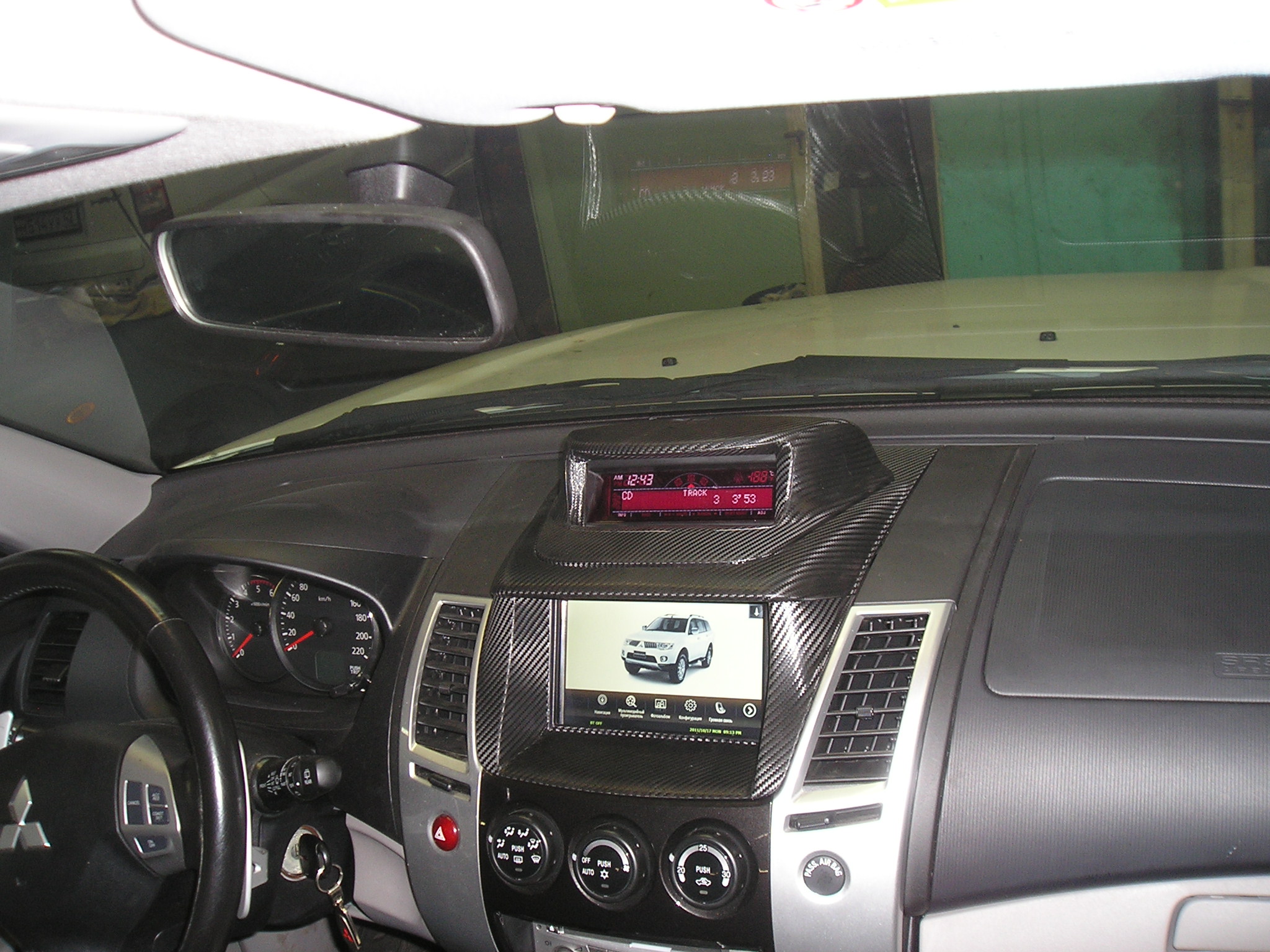 Как установил - отписался дилерам и попросил софт для замены логотипа (если присмотритесь то увидите что на одной из фоток, на экране меню монитора - Шевроле). Был приятно удивлён оперативным ответом и прогаммулькой для замены логотипа. Так как сын мой программист, по образованию, то без труда заменил картинку с Паджеро на Паджеро Спорт. В результате имеем такой вид при загрузке