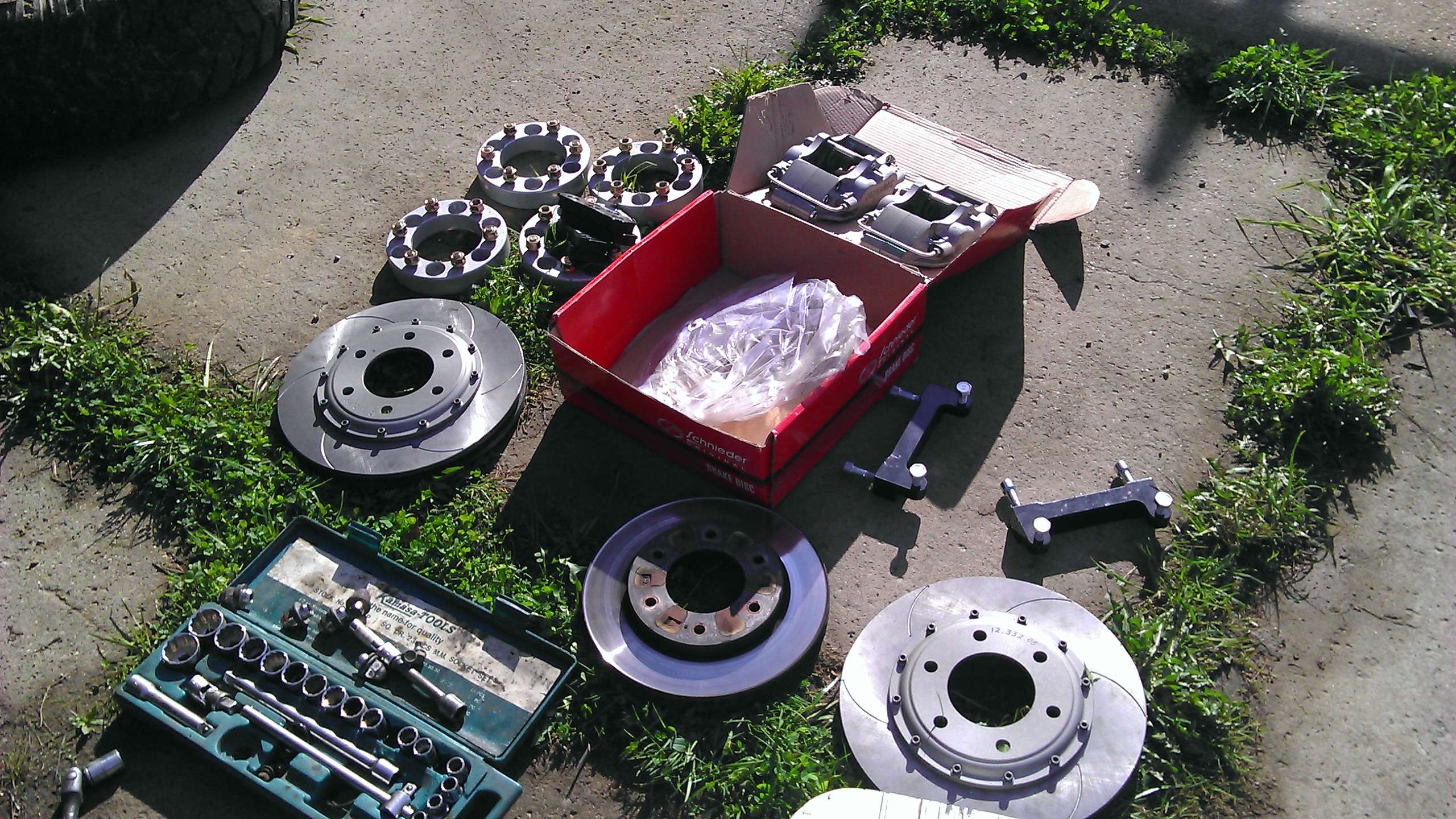 Решил я запостить данную тему, т.к работа передних тормозов на моей машине меня не устраивала,перегревались они быстро.Про задние барабанные говорить и не хочется(явное упущение японских конструкторов для двухтонной машины). Обратился я в одну известную фирму занимающихся как производством колесных дисков , так и производством тормозных многопоршевых комплектов.По словам ребят и Прома, 4-х поршневые передние тормоза на НМПС у них еще не заказывали. Обговорив детали заказа и произведя нужные замеры крепления суппортов и тормозных дисков я сделал предоплату и .....начались томительные ожидания