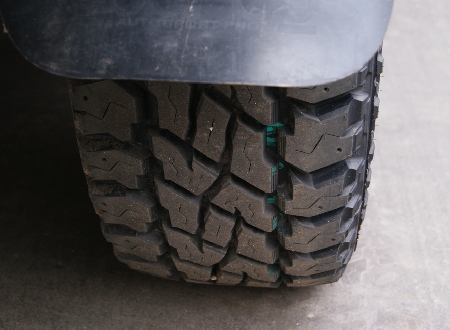 Рисунок представляет собой нечто среднее между АТ и МТ. На мой взгляд, протектор очень интересный. В отличие от большинства АТ резины плечи зубастые и открытые, то есть жижа может выдавливаться наружу. ИМХО, эта резина - нечто вроде МТ-лайт. По утверждению производителя, соотношение асфальта и бездорожья 30% / 70%. Для сравнения, у БФГ АТ 50% / 50%, у БФГ МТ КМ2 20% / 80%.