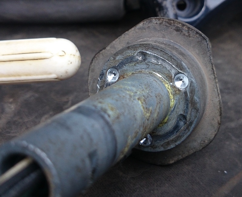 Разобрал шарнир. Разумеется, ямки для фиксации шариков уже хорошо выношены и при складывании шары за столько лет прокатали хорошие канавки. Чинить особо нечего - одноразовая по сути конструкция.