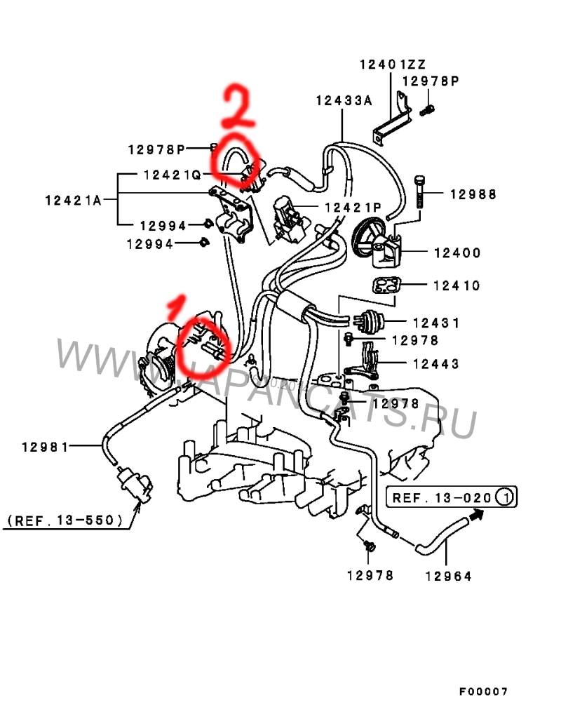 Судя по схеме под капотом шланг соединяет впускной коллектор (1) и клапан системы вентиляции топливного бака (2).