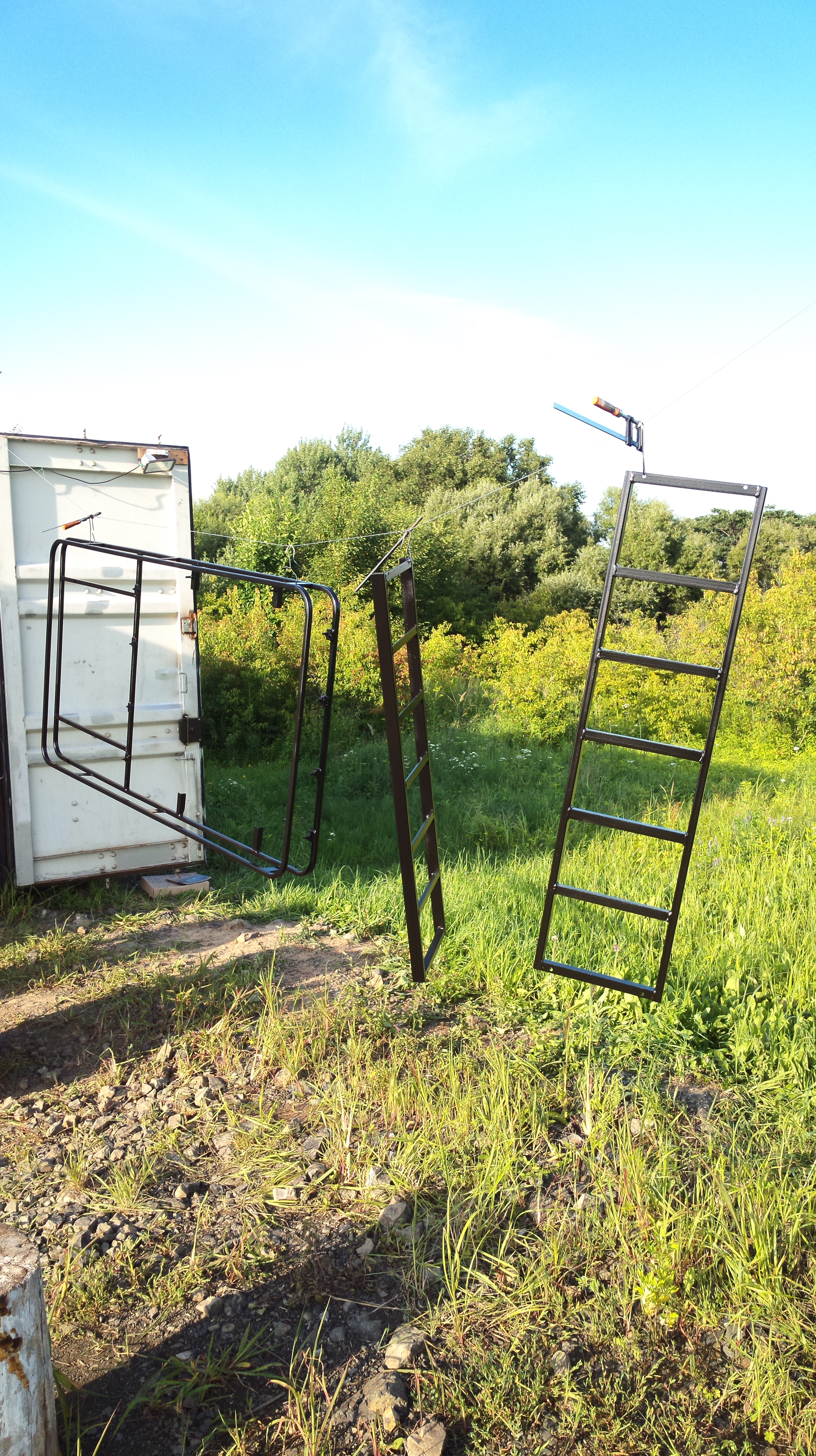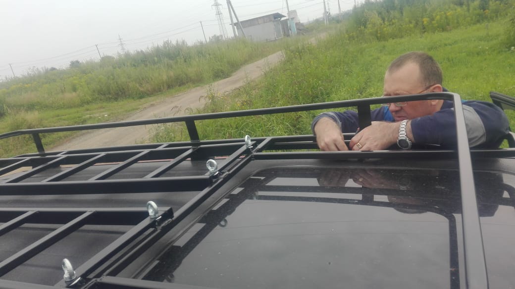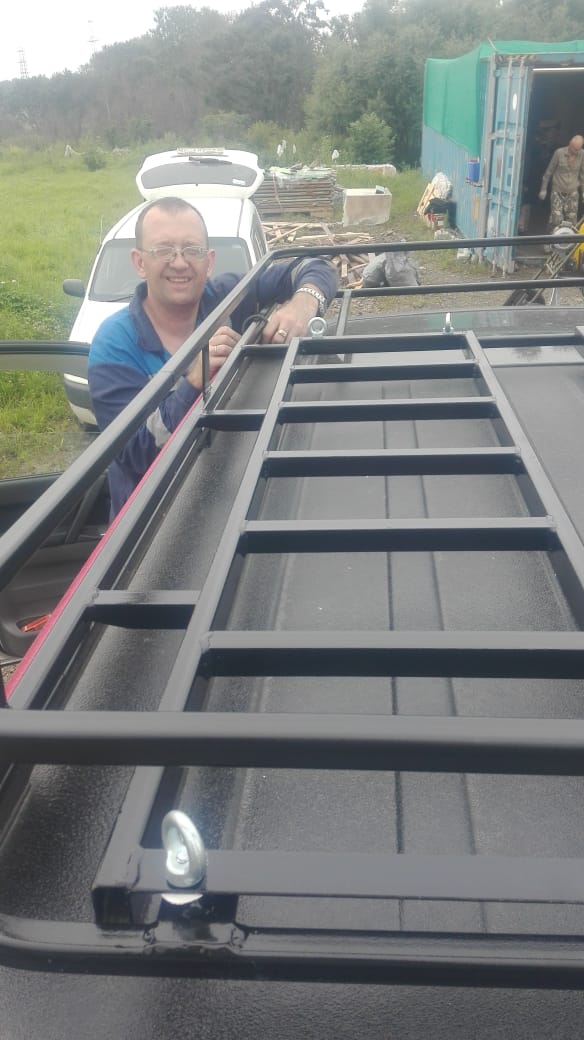 тот багажник продал с машиной, купил монтерика и сварил другой, но вместо приваренных продольных поперечин на багажник закрепил два сендтрака (лесенки из трубы 20*40*2 и уголка ) они являются полом багажника.