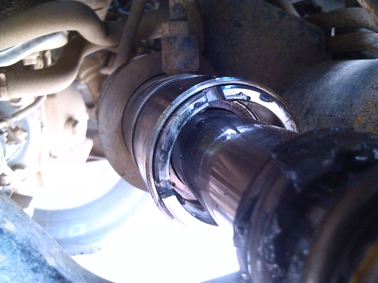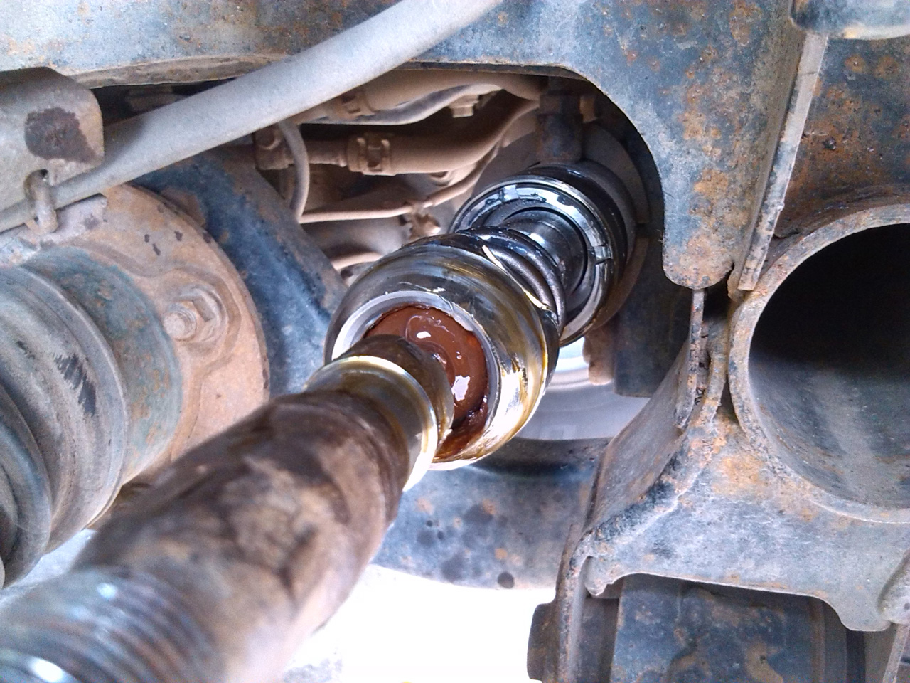 потом как-то решил сменить пыльник левый. тоже был наполовину заполнен маслом.