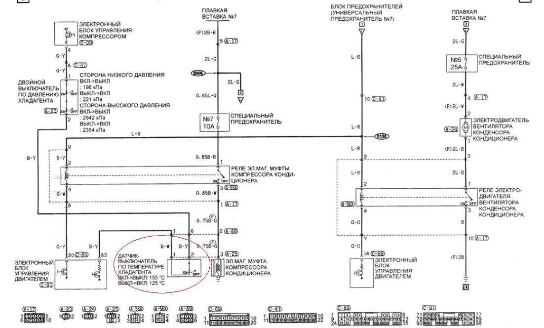 Каким образом может участвовать во всей этой схеме датчик температуры охлаждающей жидкости (на стр. 43 под номером 2 Engine coolant temperature switch (for condenser fan))? Подобный датчик на 4M40 я еще не проверил, т.к. нужно время.