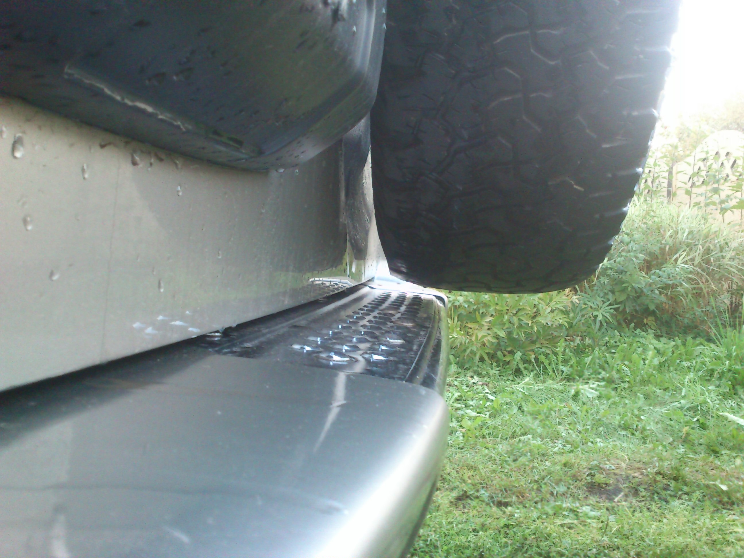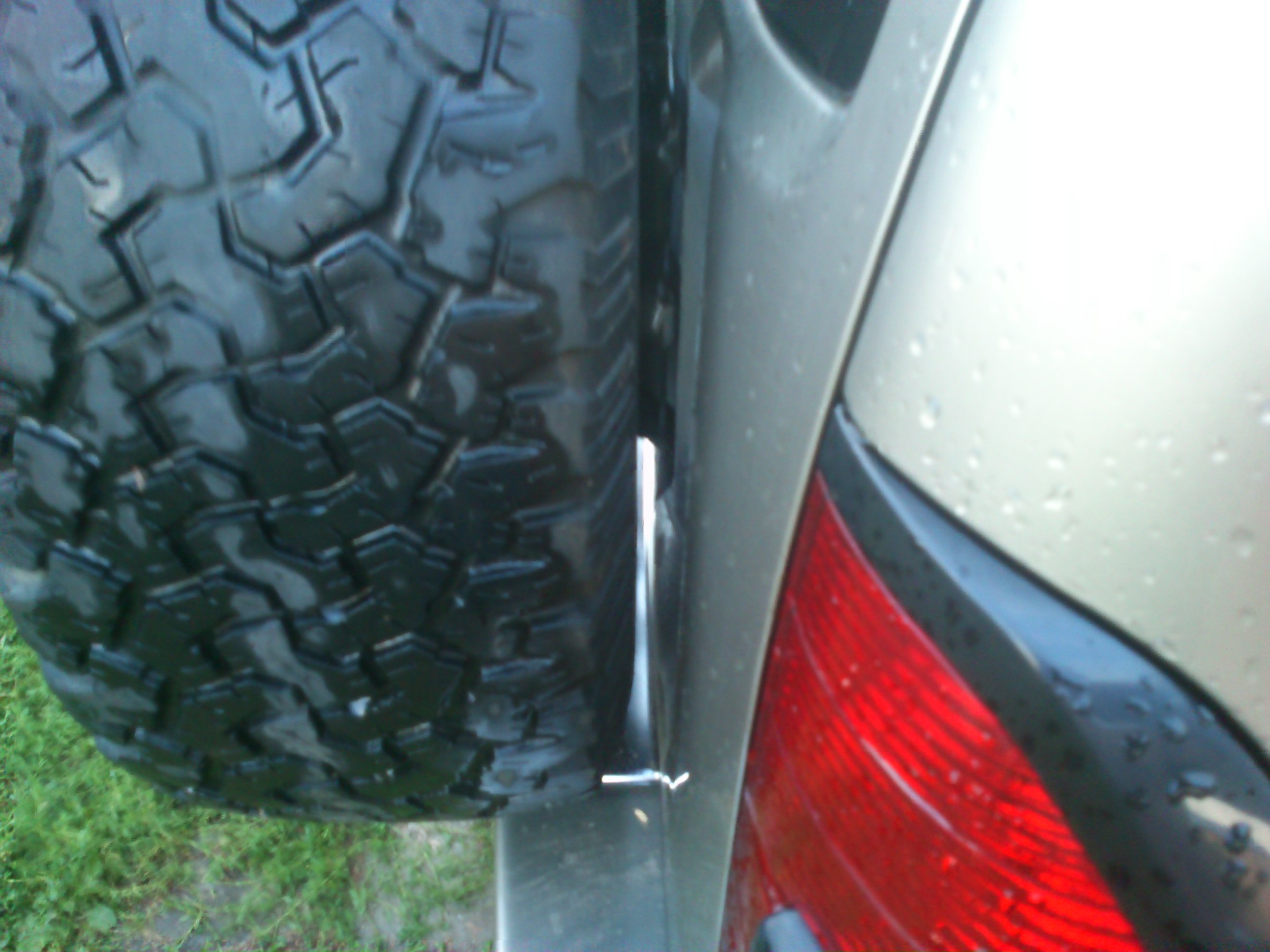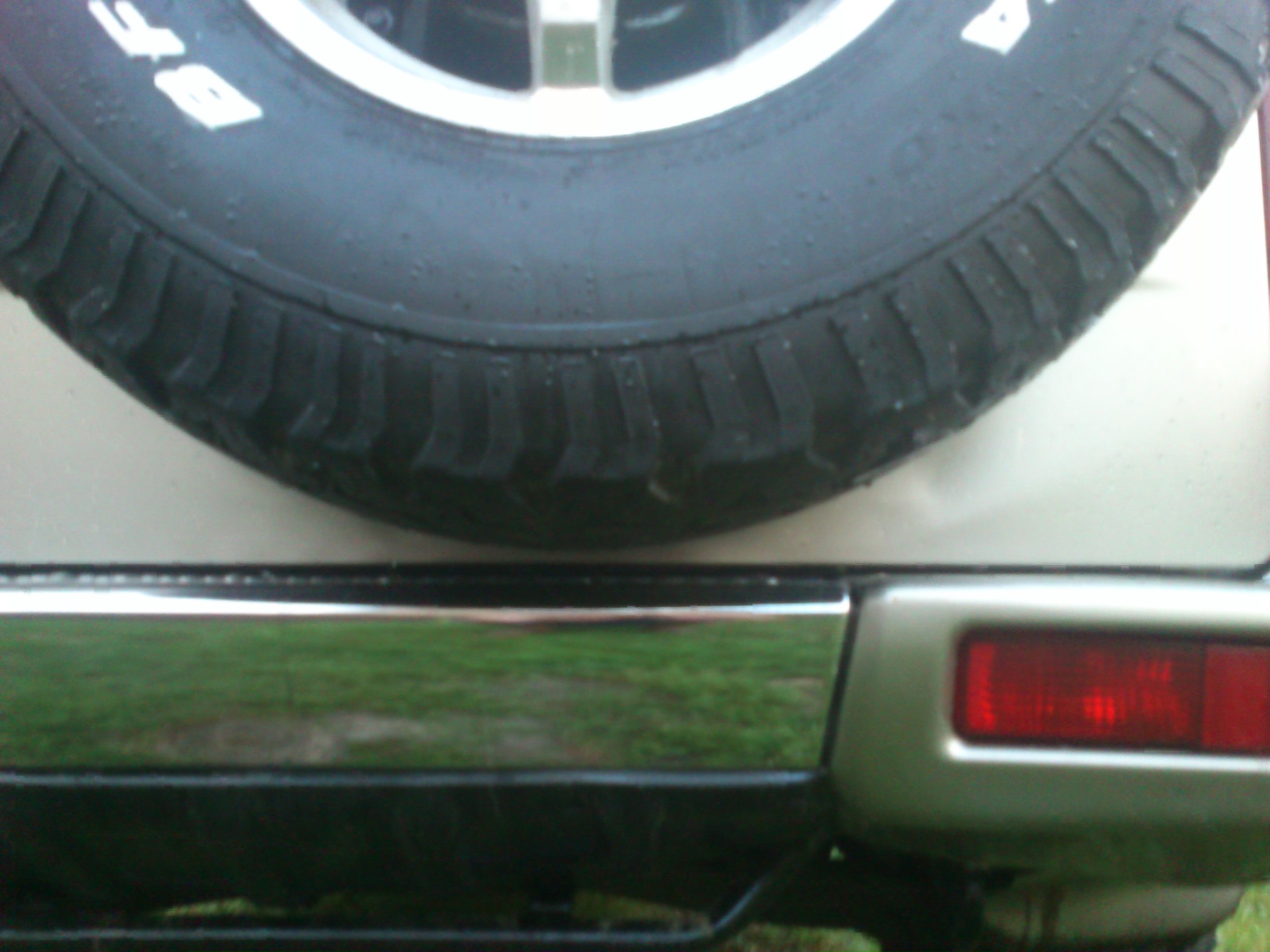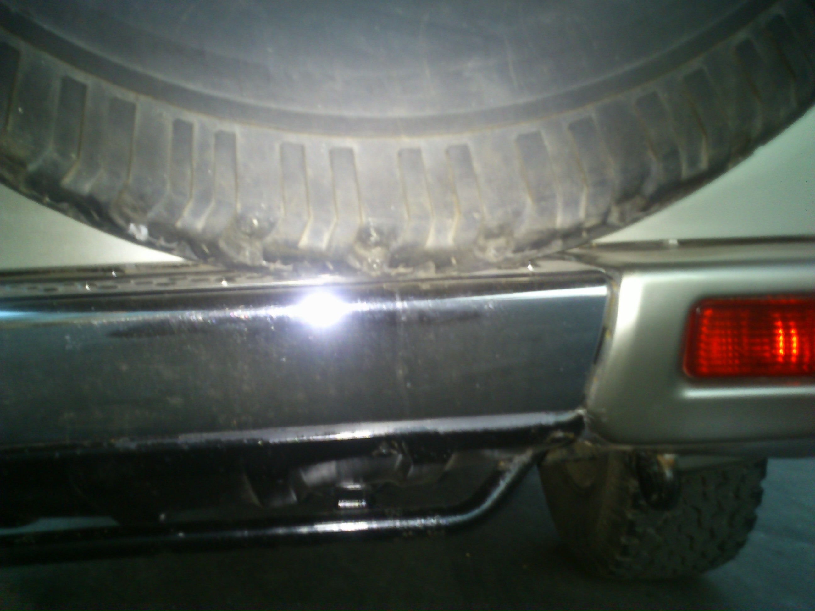 Для тех,кто редко пользуется,собсно,запаской. :*YES*: Приобрёл я наконец-то пятое колесо,в размер к остальным,ну и решил его повесить..Во первых:размер 285х65 R16 навешивается очень плотно-практически стоит на бампере,что в принципе неплохо,учитывая его вес :*SCRATCH*: Дверь,ессно,закрывается с ньюансом.. :*JOKINGLY*: Кронштейн буду переделывать-думаю пригодится старая ступица :;-): Во-вторых:рекомендую снять запаску и ответную часть кофра,чтобы осмотреть металл двери .. :*YES*: У меня там были потёртости(в нижней части)где,конечно,появилась ржавчина.Ну и конечно сам кронштейн крепления-он тоже не вечен-даже приржавел и сломался один из болтов :*PARDON*: Ну а средства борьбы с этими явлениями каждый,думаю, :;-): определит по своему.Надеюсь кому-то эта информация будет своевременна :*WRITE*: