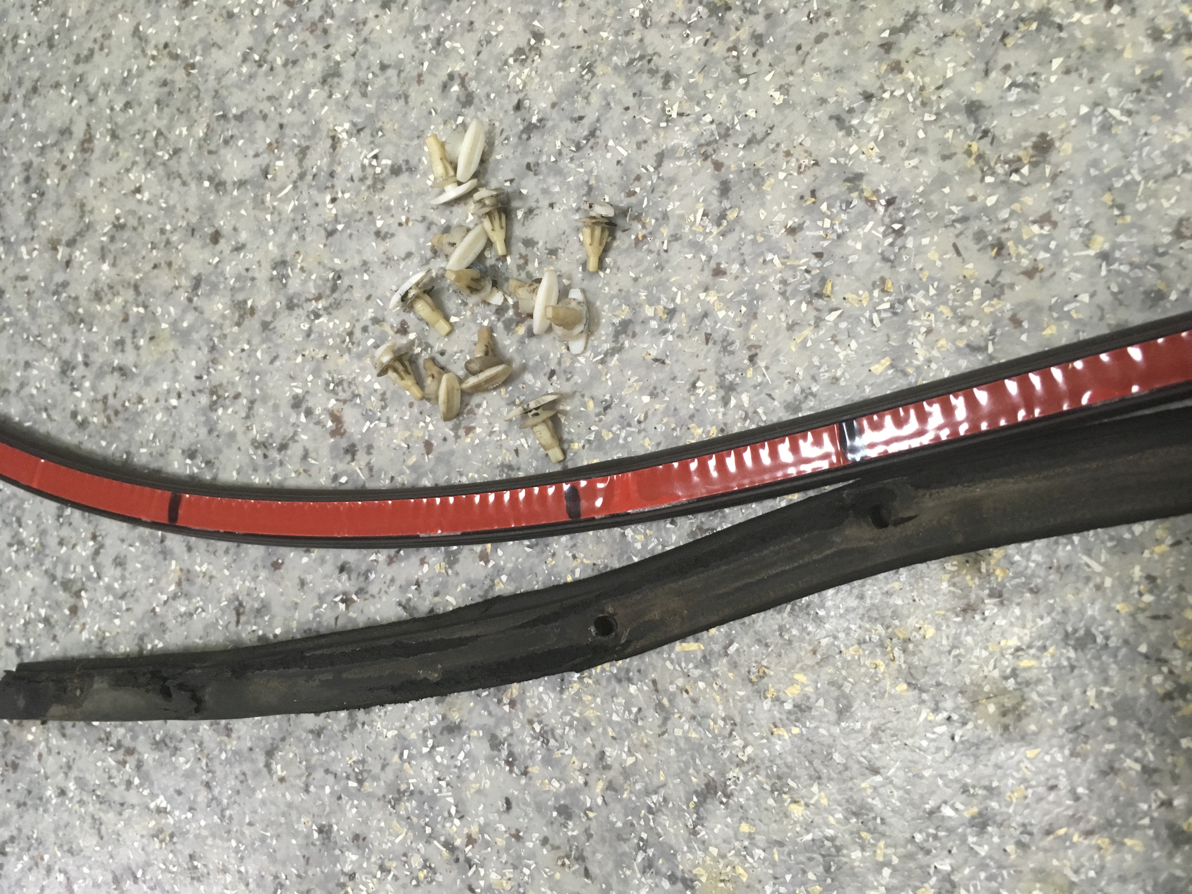 Сорвал старый уплотнитель. Клипсы снялись/выдернулись у лобового стекла получилось все сдернуть аккуратно, зацепив ножичком... а вот на капоте пять сломалось, докупил новых подбирая нечто похожее на оригинал. По старым резинкам разметил, засверлил отверстия иии готова