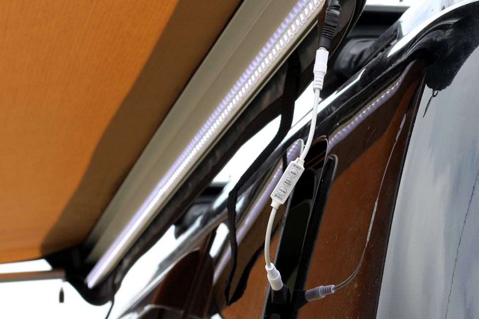Светодиодная лента 194см, примерно 20Вт, регулятор яркости, питание удлинителем в заднюю розетку