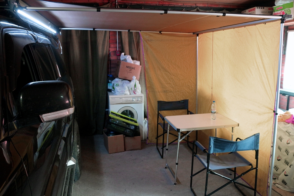 Прицепил ее к маркизе и замерил кемпинговой мебелью. Получилось вот что. Влазит две раскладушки 2000х750 с проходом около 350, или одна раскладушка + стол 800х600 + два кресла, или стол + четыре кресла. Короче мне достаточно. Фоток не делал, тк все происходило в гараже, тесно, а объектив фотика с фр18 оказался недостаточно широкоугольным.