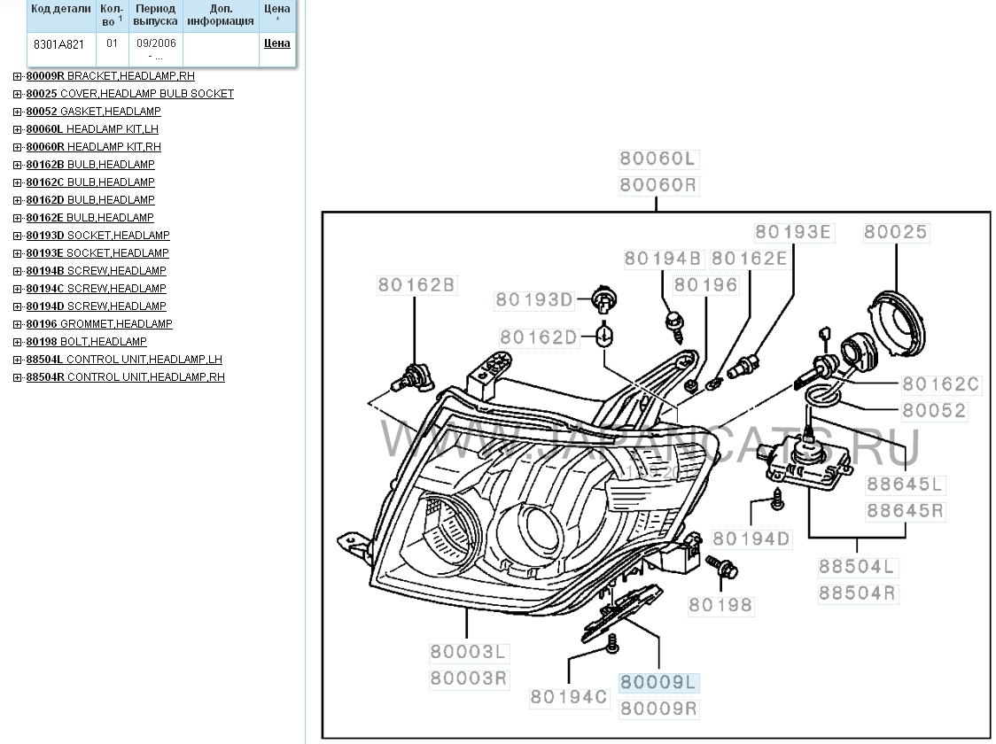 Страховая поменяла мне левую фару 8301В329 , 43170р. ,хорошо что страхую .