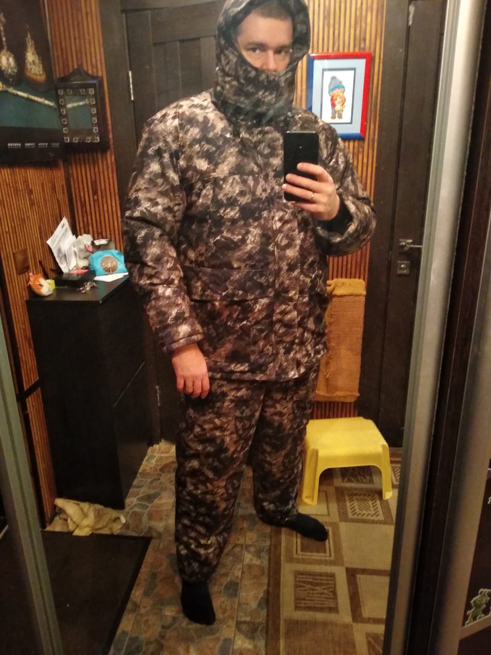 Забрал костюм для супруги, автору большое спасибо за оперативность. Дома примерила - попали в размер. Впечатления очень положительные (исключая немного нытья про "йа в нём как медведица огромная хнык-хнык"). Прошито ровно, материалы на ощупь приятные, хотя под штаны явно просится термуха для пущего комфорта. По клику полноразмерные фото. Об использовании отчитаюсь 4-5 числа, для чего собсно он и приобретался в спешном режиме.