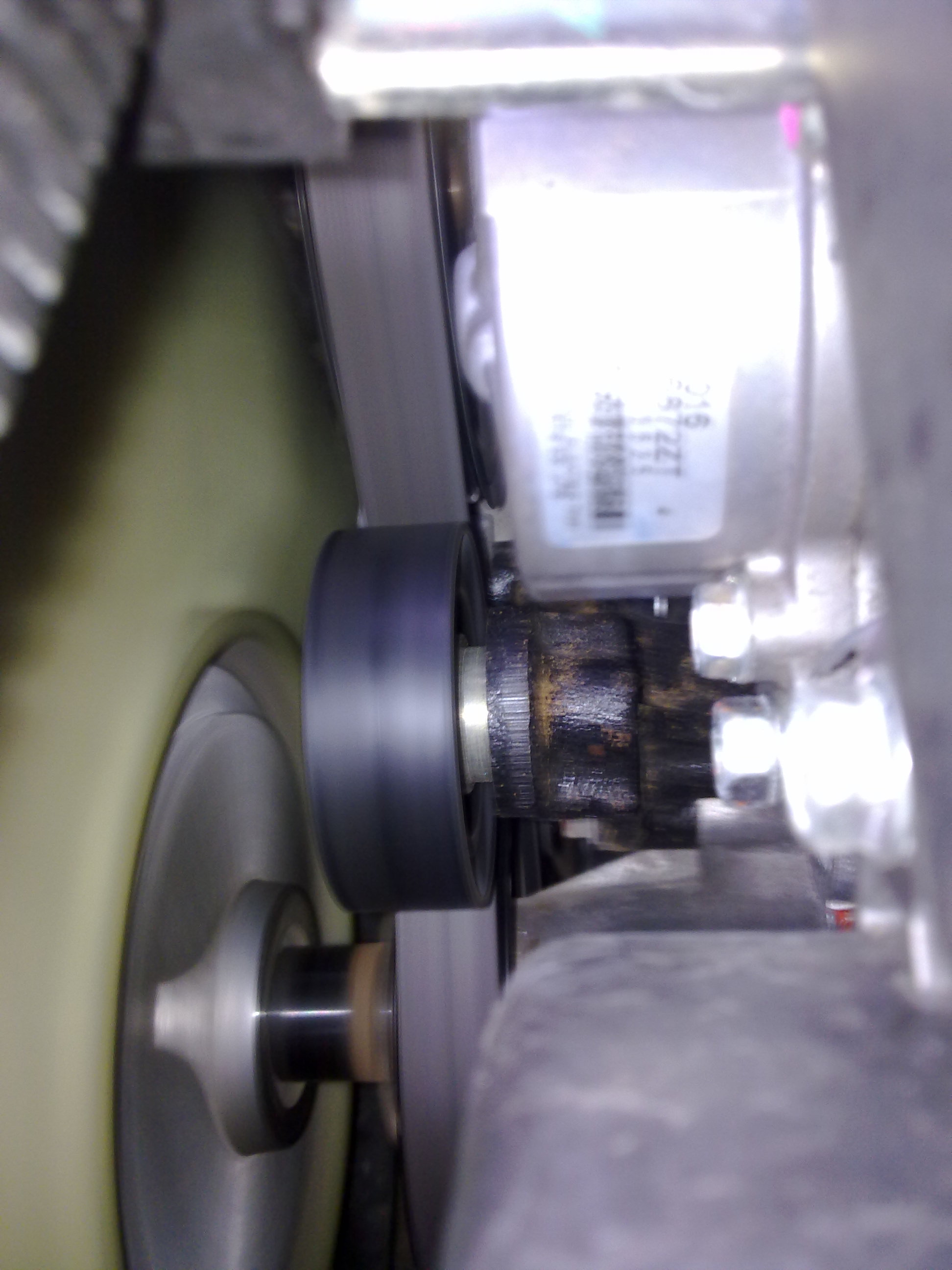 Мотор открыт. Я пошатал ролик (самый верхний, лысый такой) - люфт очевиден, от руки шатается в стороны. Машина без пробега вообще.