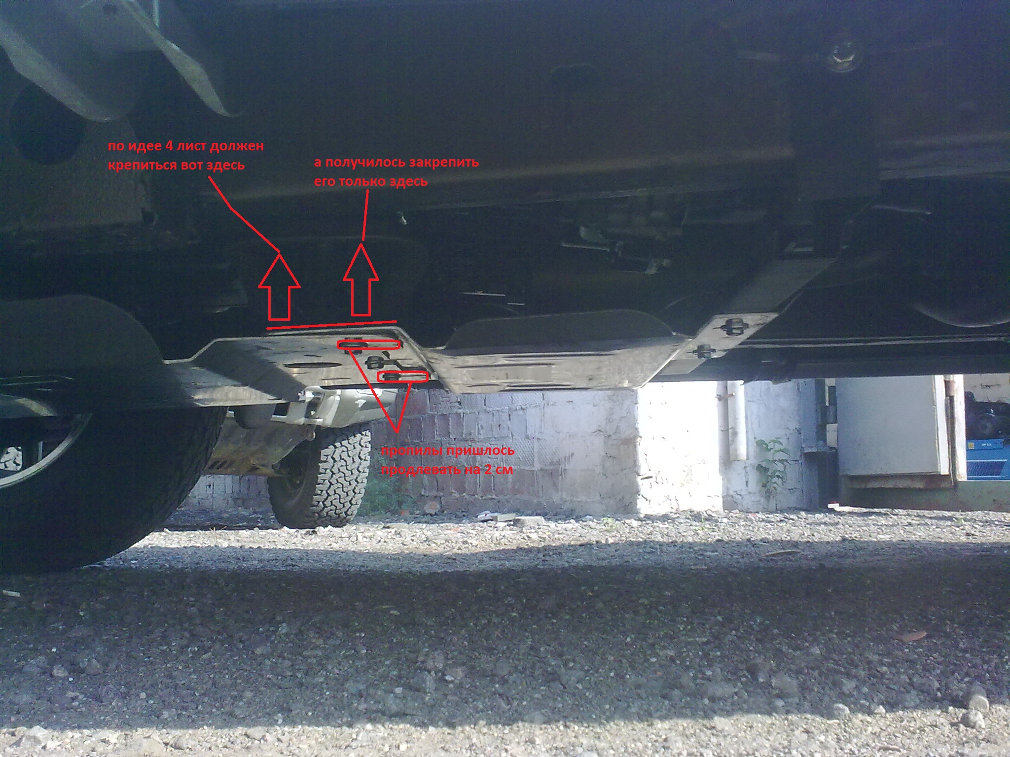 Поставил защиту ALfeco аллюминий 3,5мм первые 2 листа встали отлично, 3 и 4 не подходили в штатные отверстия по продольной линии машины, пришлось в 3-ем листе увеличивать пропилы на 2см, иначе она просто не влезала по длине, а 4 лист крепить не по инструкции в крайние пропилы, а в другие отверстия, которые находятся ближе к центру листа. Получилось, что 4 лист смещен на 10-12 см ближе к морде. То ли мне брачок попался, то ли все-таки особенности размеров бензинового мотора и коробки сказались.