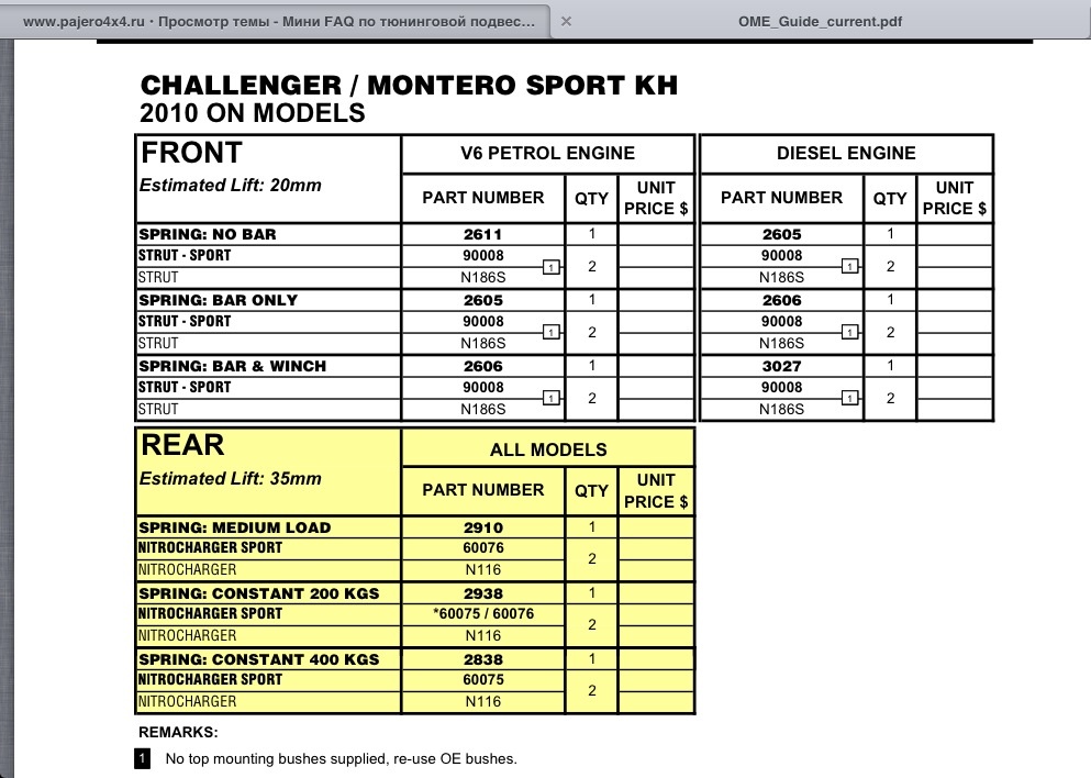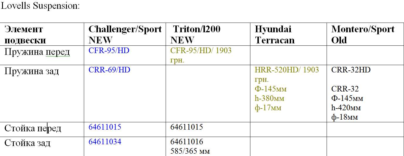 В процессе подбора подвески под свой авто, я сделал для себя файлик с возможными вариантами элементов подвески под наш автомобиль.