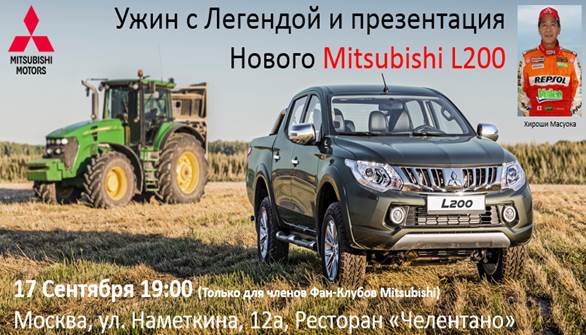 17 сентября (четверг, 18-19 часов) ММС Рус планирует провести презентацию нового L200 для участников фан-клубов.