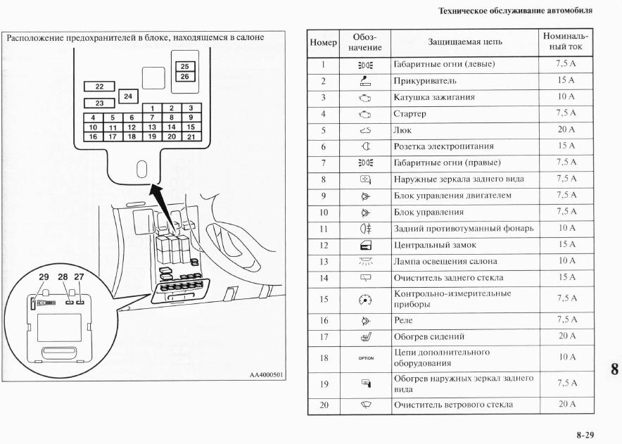 - № 8, 7.5 А - Наружные зеркала заднего вида (по рисунку - регулировка, возможно, и складывание, но не понятно - надо тестером).