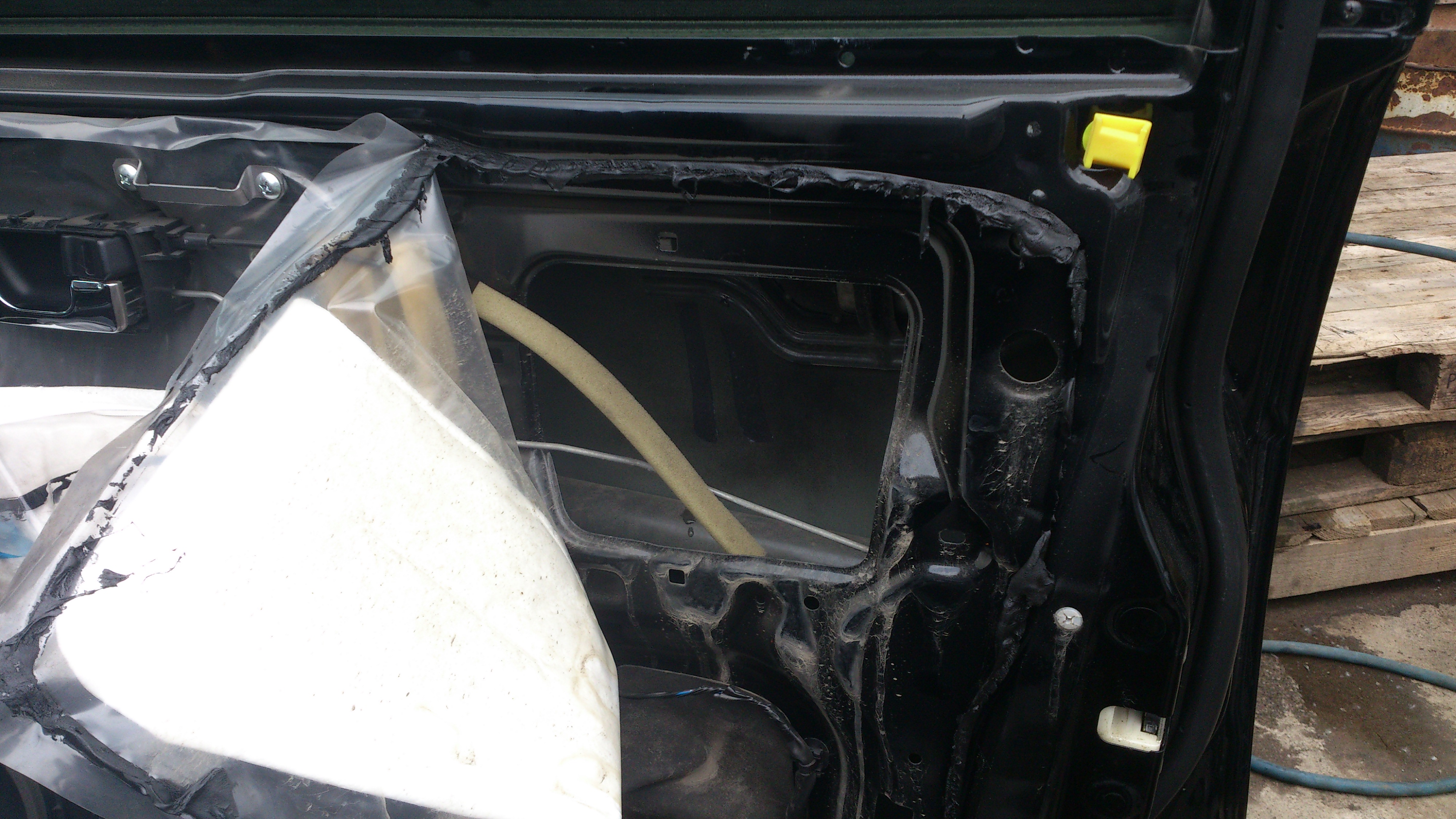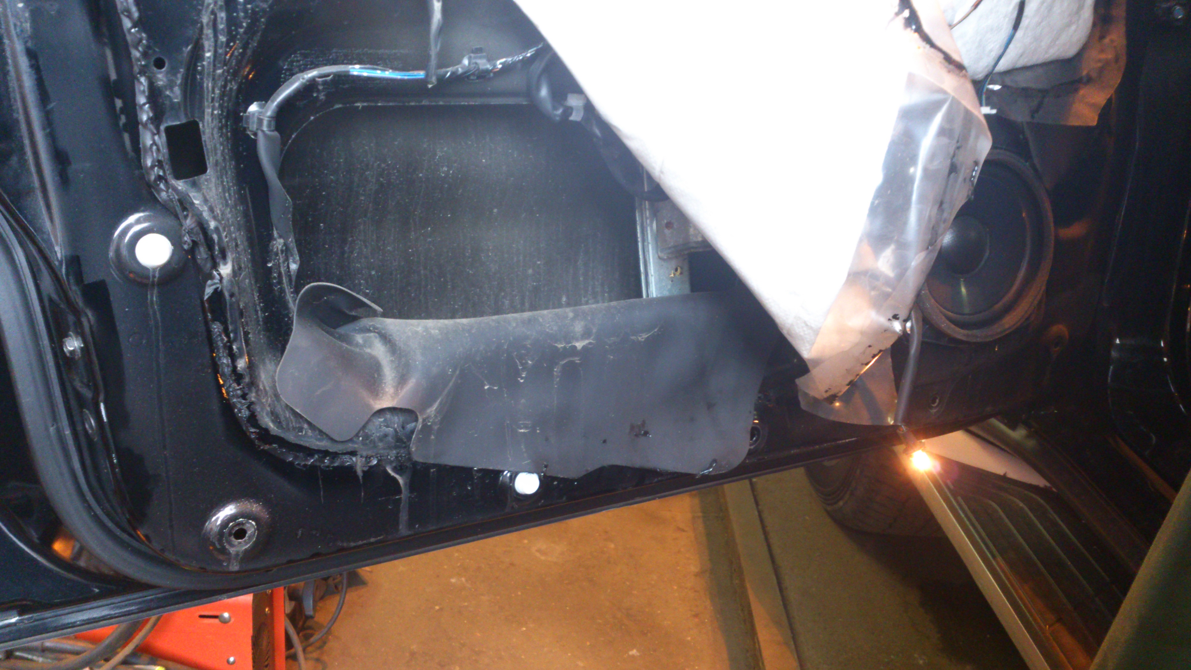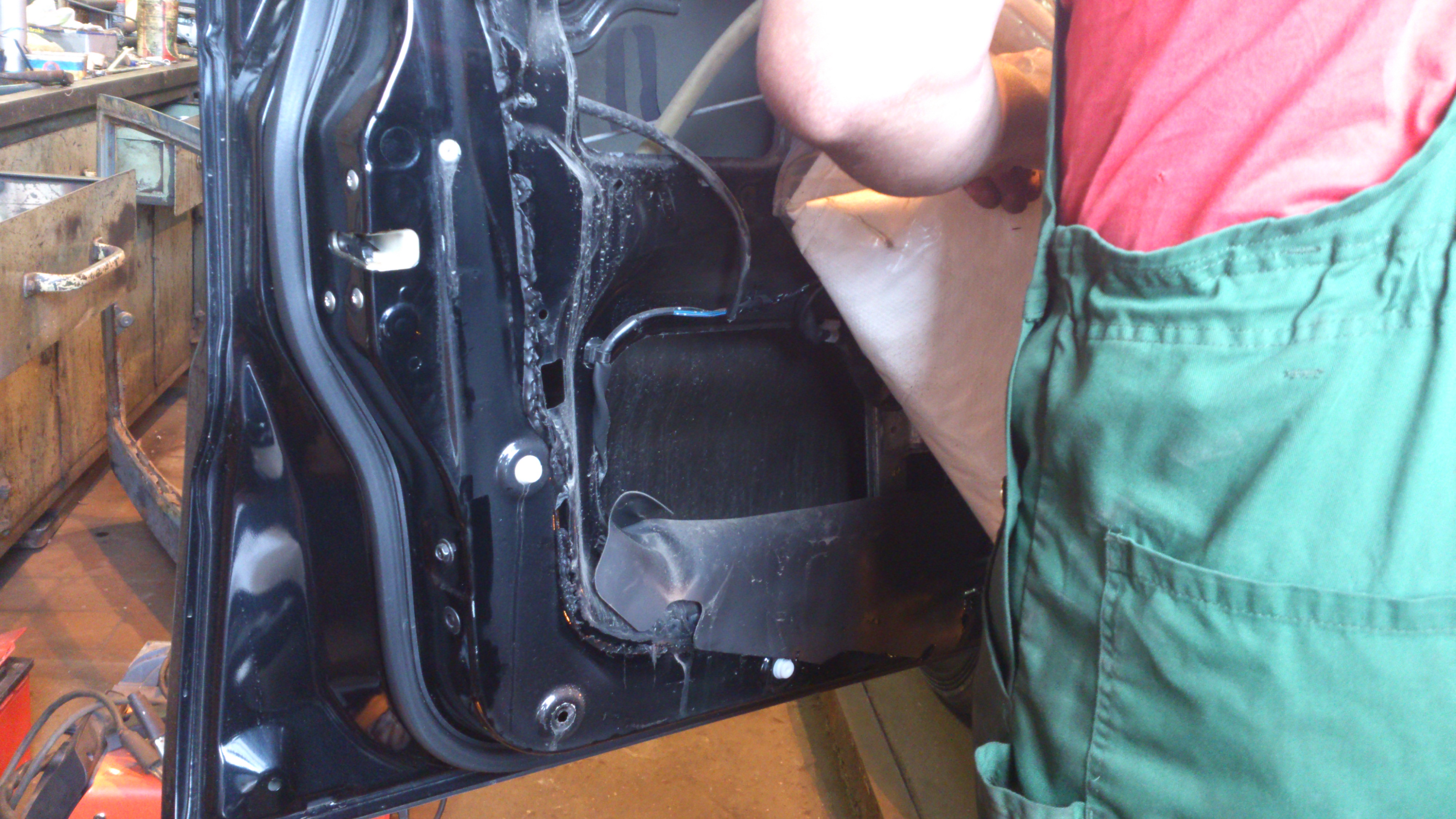 Rasha Gold писал(а):Судя по Вашим фотографиям можно предположить что вода попадает между обшивкой и пленкой которой заклеены крупные отверстия в двери. Значит как вариант - вода попадает через отверстия в районе крепления бокового зеркала или проводки к зеркалу, а далее по проводам. Попробуйте снять обшивку двери и сидя в салоне попросите кого нибудь полить из шланга на разобранную дверь. Либо на мойку заехать. Если версия верна то Вы увидите как потечет вода в салон по проводам. Ну и соответственно либо разобрать зеркало и найти причину, либо заделать герметиком место протечки.