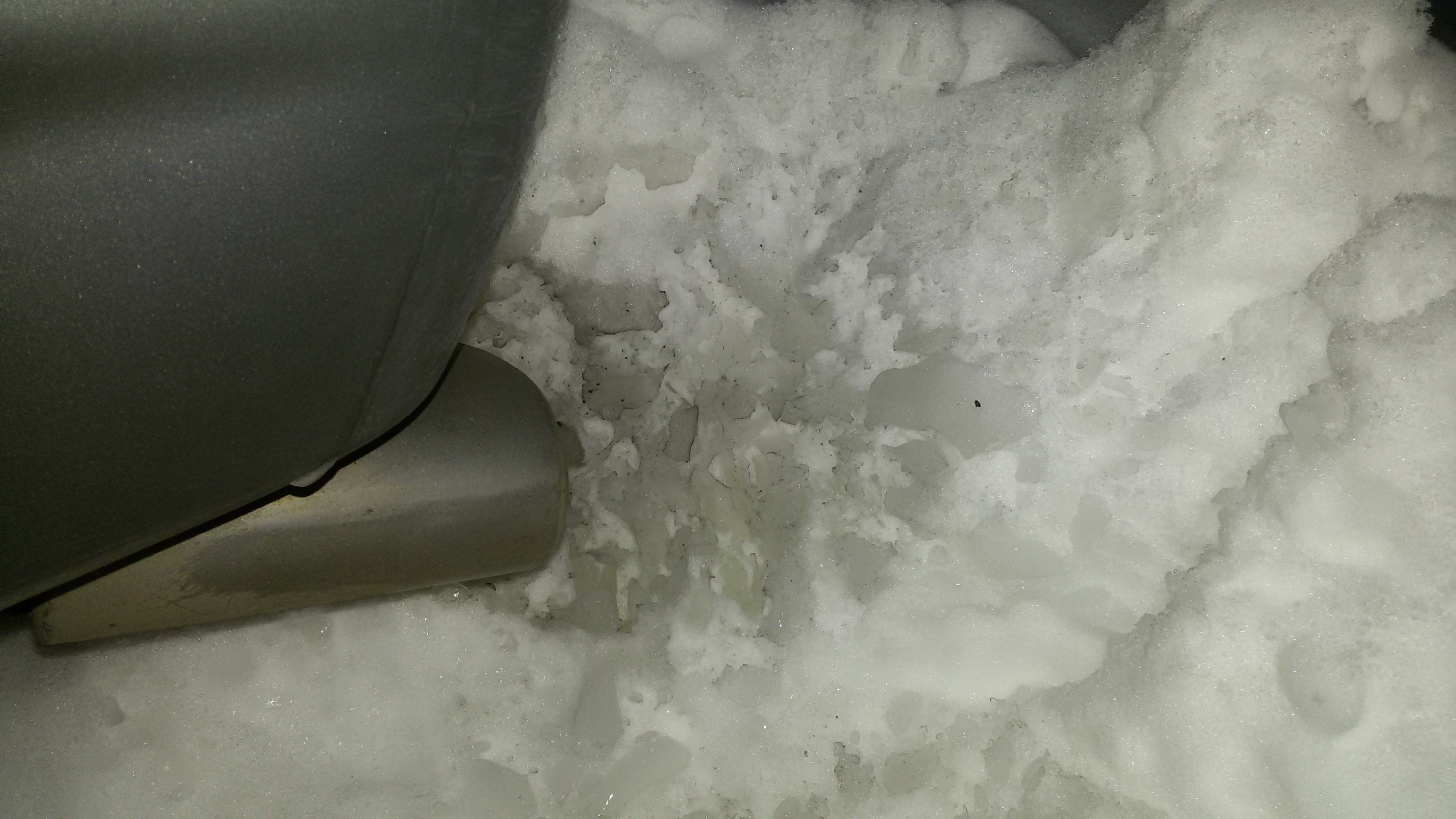 Вчера пока ждал жену с работы выхлопухой упёрся в снег, простоял 10 минут, сделал несколько перегазовок, решил посмотреть на цвет снега, вот что вышло, фотал ночью со вспышкой, по моему для дизеля выхлоп довольно таки чистый?