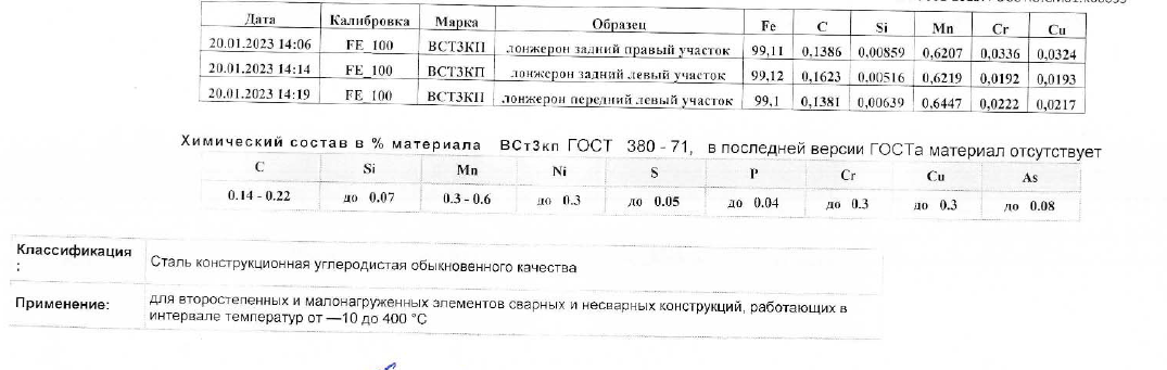 "Результат: Сталь рамы мягкая - кипящая кп 3 с зоной эксплуатации до -10 С !