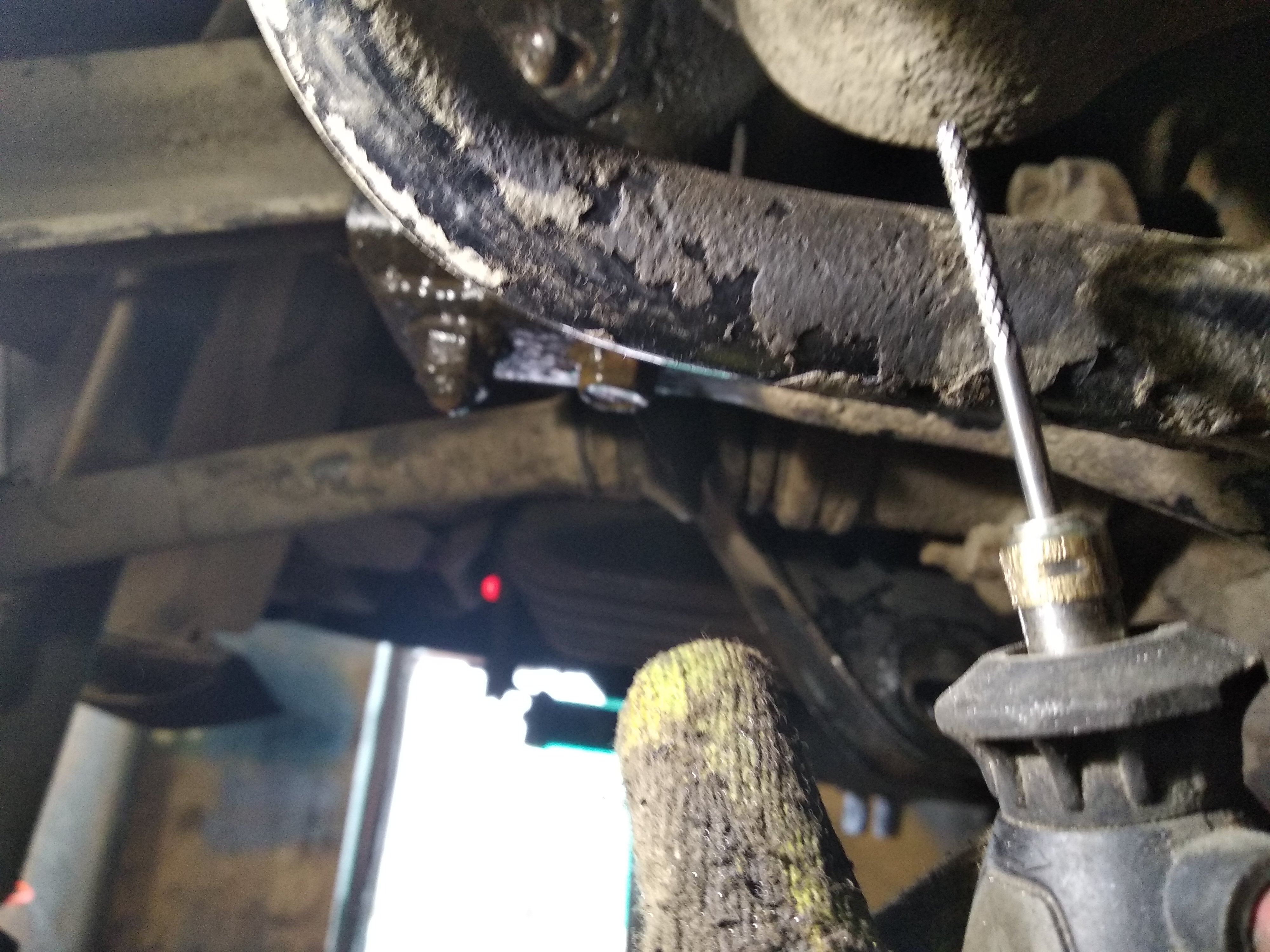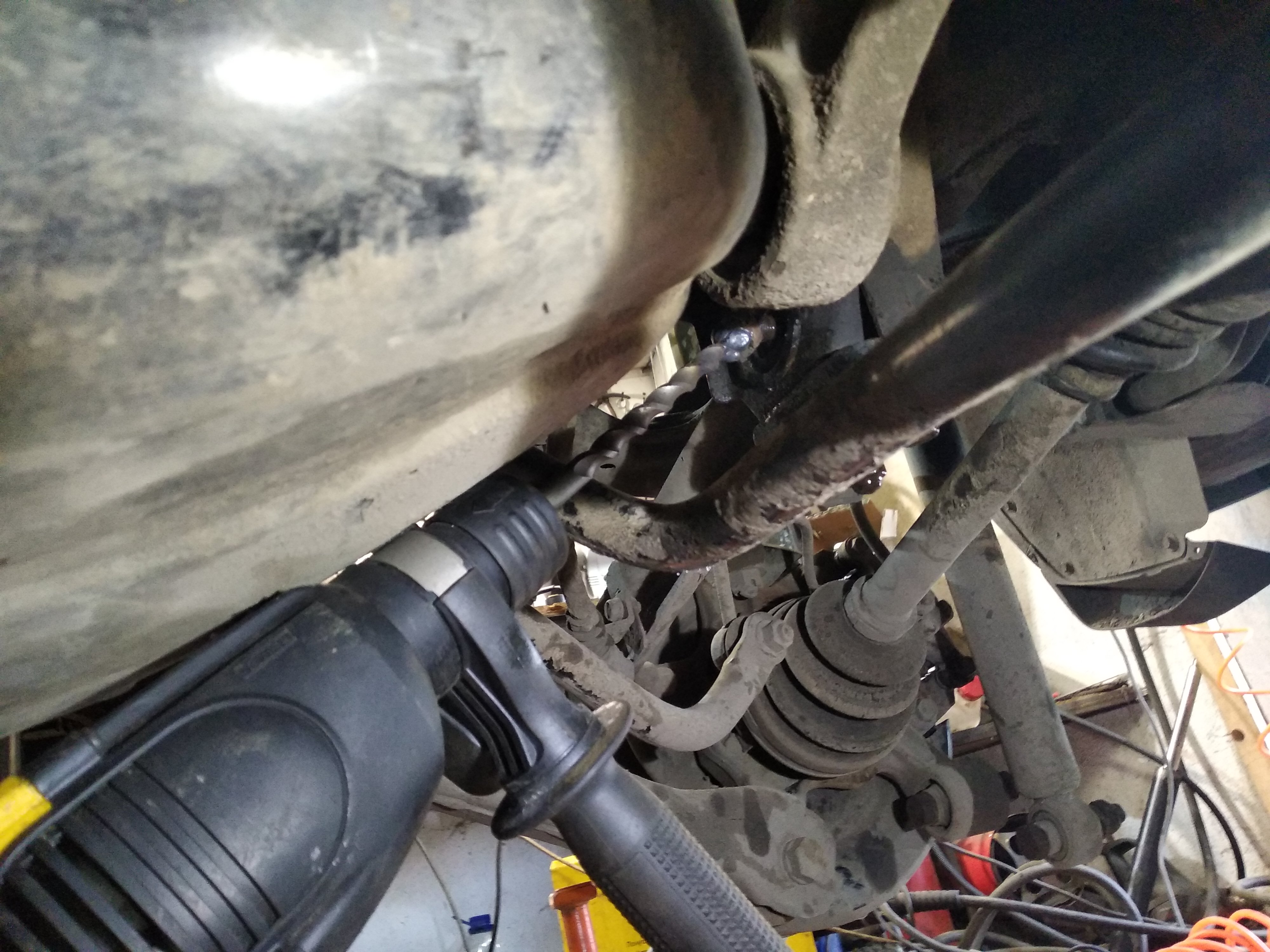 Итоги борьбы: 6 болтов открутились относительно легко, за пару часов при помощи пневмогайковерта, вд40 и простукиваний. Два болта сзади с пассажирской стороны подчиниться отказались.Перепробовал гайковерт, вд40, нагрев болтов током ( типа того что в видео выше), раст-стоп, перфоратор, самопальную жижу на базе трилон-б, кувалду. Ничего не помогло.в итоге, отчаявшись, позвонив в один из сервисов, мне дали совет по телефону( бесплатно без регистрации и смс!!!): хреначить перфоратопом до победы, минут по 10, в запущенных случаях больше, перфоратор чем злее тем лучше.Необходимо скрафтить приблуду: отрезать от бура 12 мм твердосплавную башку, на нее приварить гайку с отверстием чуть больше диаметра болта ( или такую же с высверленной резьбой). Упираемся в перф, в режиме удара без вращения стучим в болт.Первые минут 5-7 результата не видно, затем болт вылез примерно на половину толщины шайбы.За следующие минут 10 болт ушёл в сайлент по самый конец. Затем берётся дремель, фрезой в центре делается ямка ( чтоб бур не соскакивал), приблуда меняется на обычный бур по бетону 10 мм, дальше выстукиваем им.На два болта ушёл час!Болт верхней тяги менее удобно выбивать, поскольку это можно делать только под 45 градусов.Когда остаётся треть длины болта, можно довершить гайковертом.Наполовину выбитый болт гайковерт не брал.Перф юзал с энергией удара около 3Дж, если память не изменяет.
