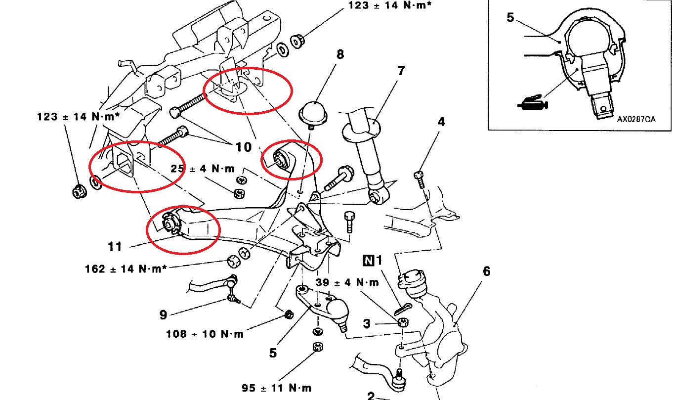 Как я понял из прочитанных тем по сходу-развалу у Mitsubishi Pajero III большая проблема с закисанием регулировочных болтов (ну и прочего). Так же я понял, что если предварительно всё это хозяйство обработать WD-40, то появляется шанс, что смогут болты покрутить и сход-развал выставить. А теперь внимание вопрос: Куда лить WD-40. Для такого оленя как я ответ лучше в виде фото с обведённым красным маркером зонами обильного орошения. Разъяснити пожалуста - будте человеками. :oops: