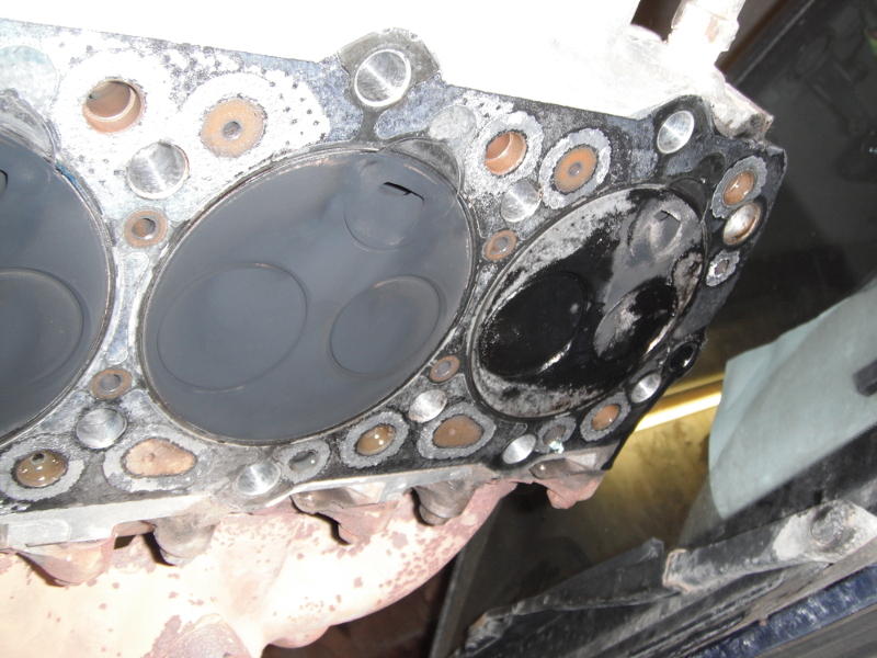 Прокладка целая, а вот прямо из головы (noname) окуда-то (наверное из-под форкамер) в четвертый цилиндр текло. Надо опрессовывать. Зеркало в 4м нарушено (т.е. не блестит).