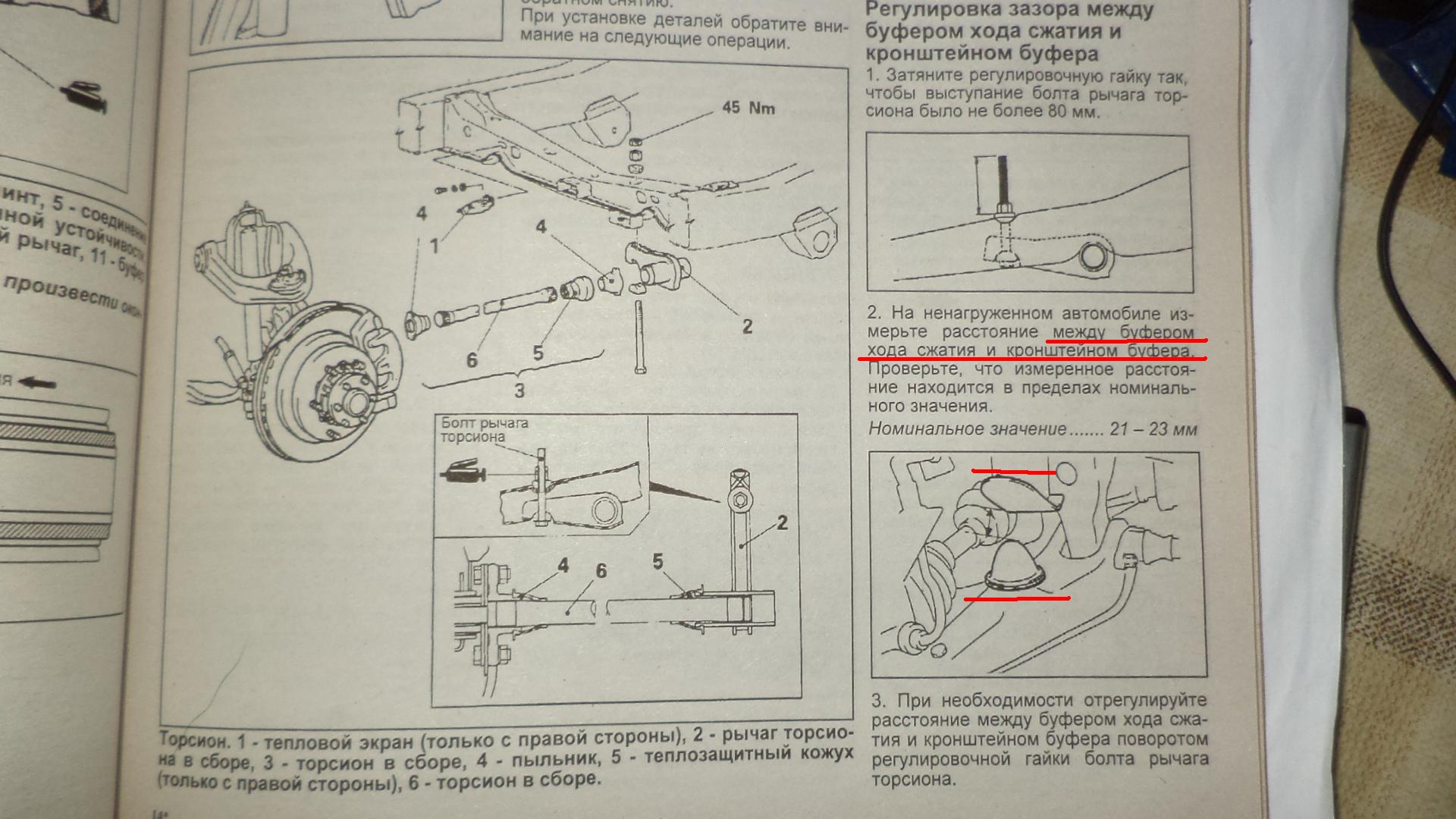 На моих фотках не то что рулетка,даже штангенциркуль присутствует.Про процедуру измерения я уже говорил,загляните под машину,под любой Паджерик и если вы в теме то сразу все станет ясно.Ваши пружины сразу можно узнать без рулетки по сложеным виткам.Процедура измерения на П-2 в книге есть,например там перед регулируется и меряется он совсем не по колесам и арке а по расстоянию до отбойников.На фотке из книги стандартная процедура проверки передней подвески ,но сути не меняет,технология замеров на лицо,задняя подвеска не регулируется,только если пружины не менять.Найдите там хоть одно слово про АРКИ,ЦЕНТР КОЛЕСА и тд.ВСЕ фото во всех темах открываются на весь экран если по ним щелкнуть мышкой,вдруг кто не знает.