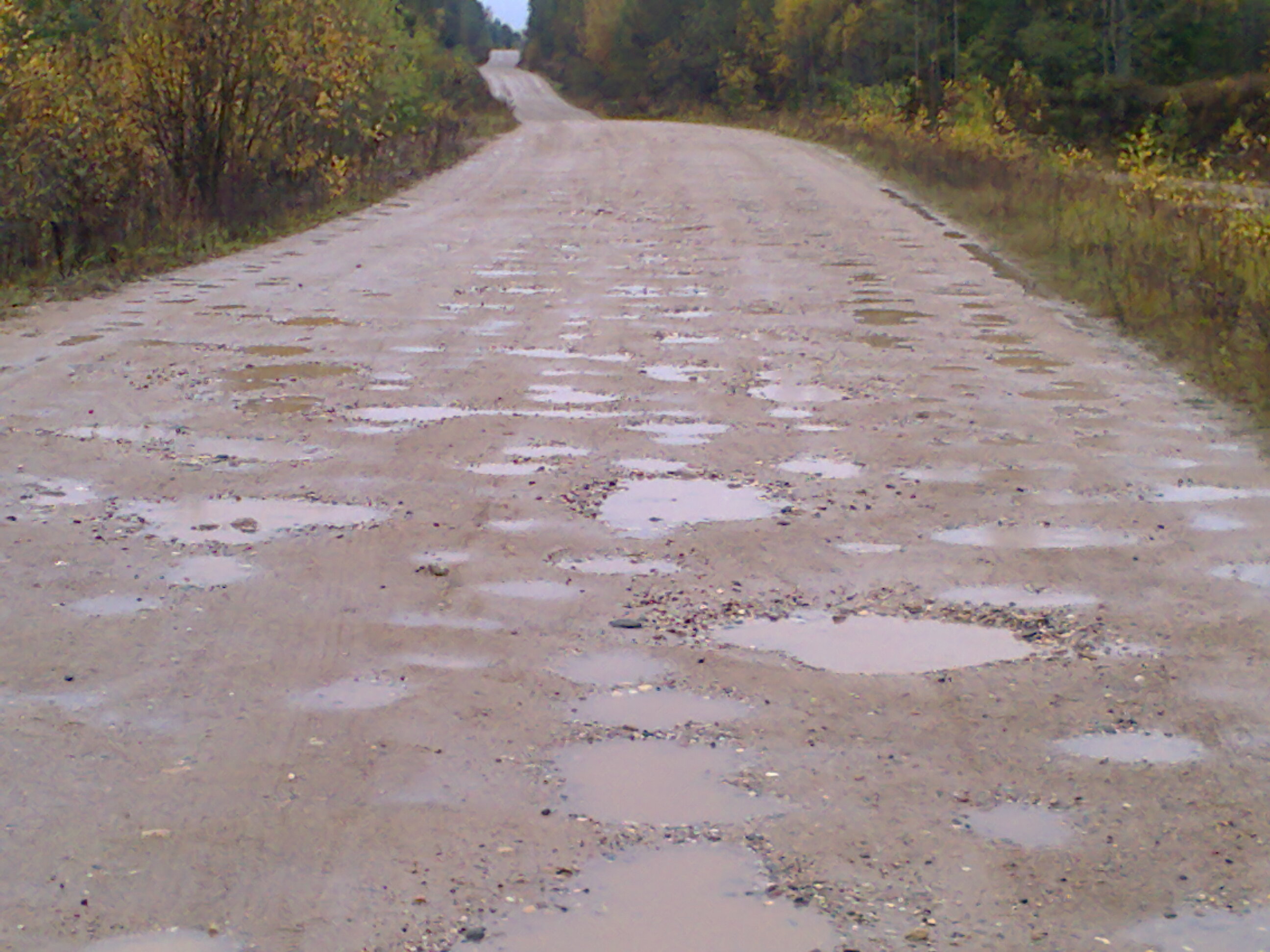 40 км вибратора каждый день постоянно,потом 20км разбитого и на половину присыпаного песком асфальта,потом нормальный асфальт.Резина 31/10.5/15,давление 1.8,сегодня мерял было даже меньше.По асфальту на полуспущеных не поедешь!Вот типа асфальт.