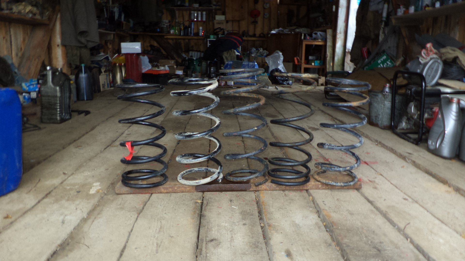 У меня в гараже стоят новые Каябовские пусть жесткие зато на 100тыщ км хватит.А если с этими засада то дали на просадку два года гарантии.Месяц уже прошел.Сегодня вот еще 500 км прибавилось.Завтра налью целый бак посажу мешки вместо пассажиров и водителя и будет видно,менять пружины по гарантии или еще 3тыщи проехать.А Оковские пружины у меня в гараже валяются.Фотка так для общего развития,пружин от оки правда не ставил,не хватает еще двух видов пружин,одни продал,другие в другом гараже гдето валяются.