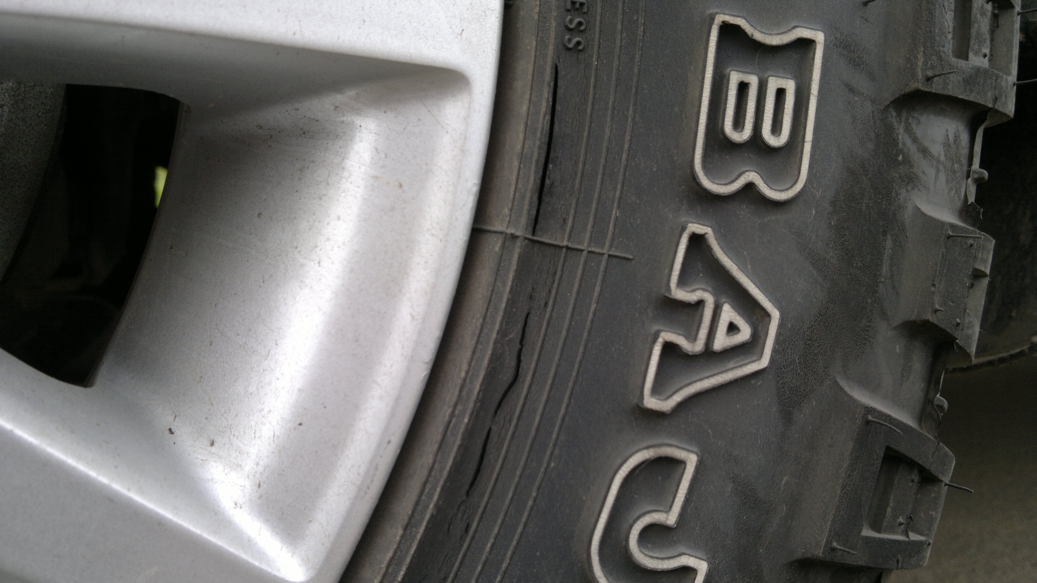 На днях, после того как подкачал колёса с 1,9 до 2,2атм., заметил небольшие трещинки на покрышках, на резине проехал примерно 5000км. Подскажите пожалуйста - насколько это критично (фото ниже) и можно ли дальше такую резину эксплуатировать, резина Mickey Thompson Baja MTZ Radial 265/70/17, боковина, как заявляет производитель усиленная (3 слоя корта на боковине)