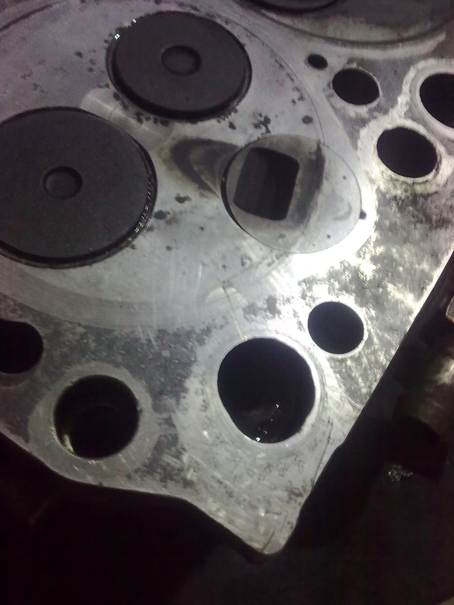 С чугуном в плане материала дело обстоит немного лучше чем с АL поры и раковины практически отсутствуют. Резьбы нормального качества проблема с сёдлами и направляющими аналогична проблеме в AL гбц иногда встречаются головки с очень крупным шагом режущего инструмента используемого при обработке привалочной плоскости такой дефект лучше сразу устранять в противном случае очень часто проявляются проблемы типа : течь прокладки гбц , прорыв газов в систему охлаждения или пробой прокладки в районе канала давления масла и как следствие поступление масла в охл жидкость даже при использовании оригинальных прокладок