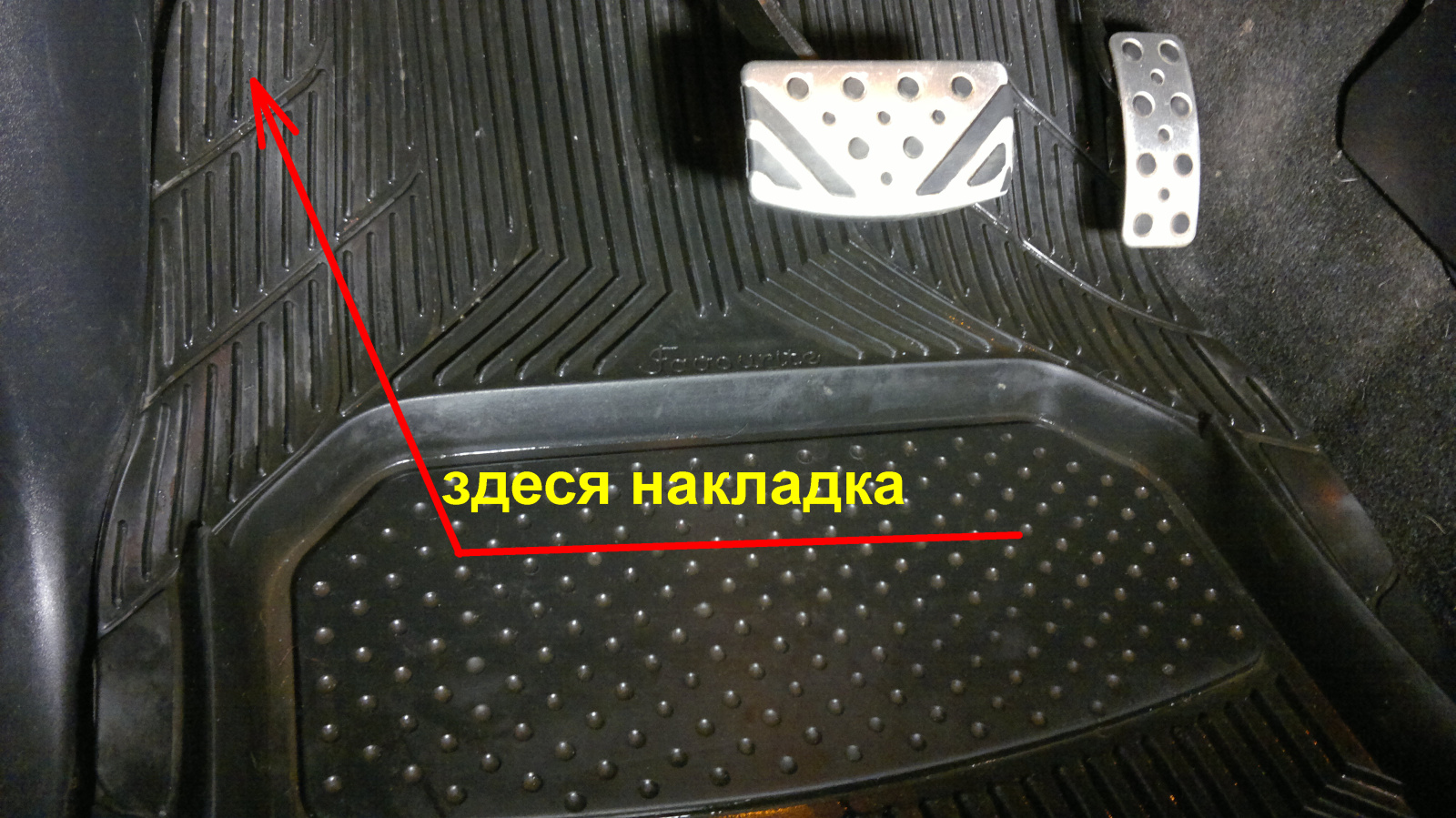 Вообще это очень полезная инфа, что у штатного рещиого коврика нет язычка закрывающего площадку для отдыха ноги. Нахрена этот коврик тогда, если вся гряз и вода будет под него уходить?