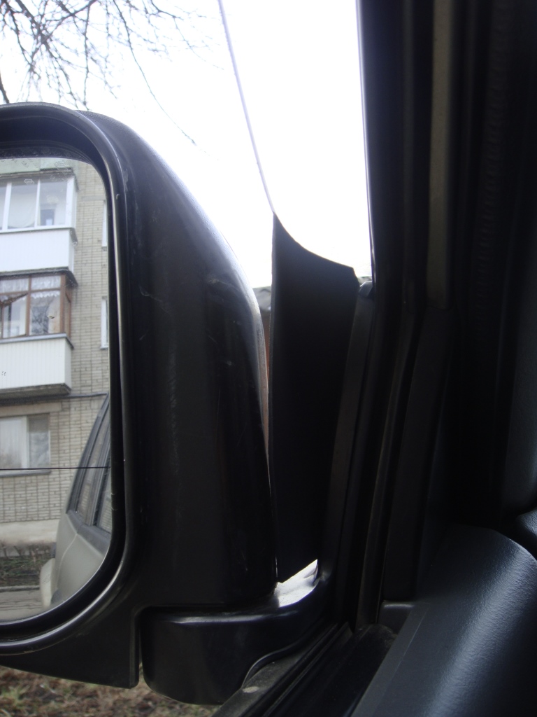 заметил,что грязь на стекло летит в щель между зеркалом и скосом двери,где крепежка зеркала прикручена.