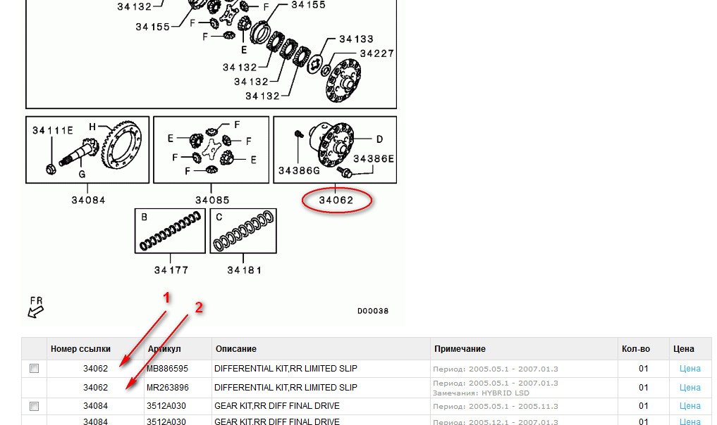 Да, действительно в каталоге http://japancars.ru/index.php?route=cat ... blk_id=220 видно, что деталь с каталожным номером 34062 это диф с LSD и показана конструкция с фрикционными пластинами, только чуть ниже написано, что спорты комплектовались двумя различными типами диф. LSD - просто LSD (парт номер MB886595 ) и HYBRID LSD (парт номер MR263896 ) под одним и тем же каталожным номером 34062 . Я думаю, что на рисунке конструкция не гибридного LSD дифа. У меня кстати по моему вину каталог митсубиси ASA показывает такой же парт номер MR263896. У меня спорт 2003 г.Sfinks писал(а): Тут видно каталожный номер: