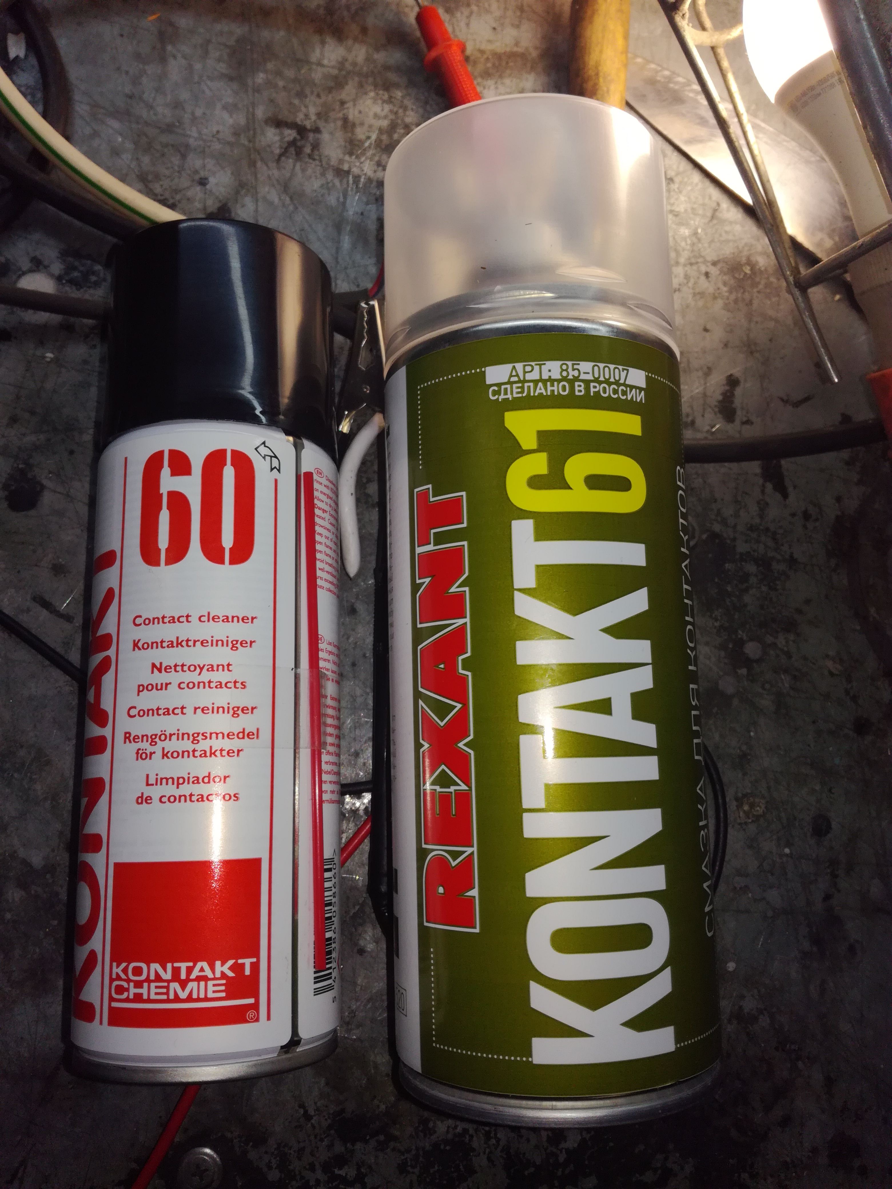Пошел, купил очиститель контактов № 60 (Средство чистящее для окисленных и загрязненных контактов) и еще одну химию № 61 ( Средство для очистки и защиты контактов KONTAKT 61). В интернете про них много написано. Очень неплохая химия.