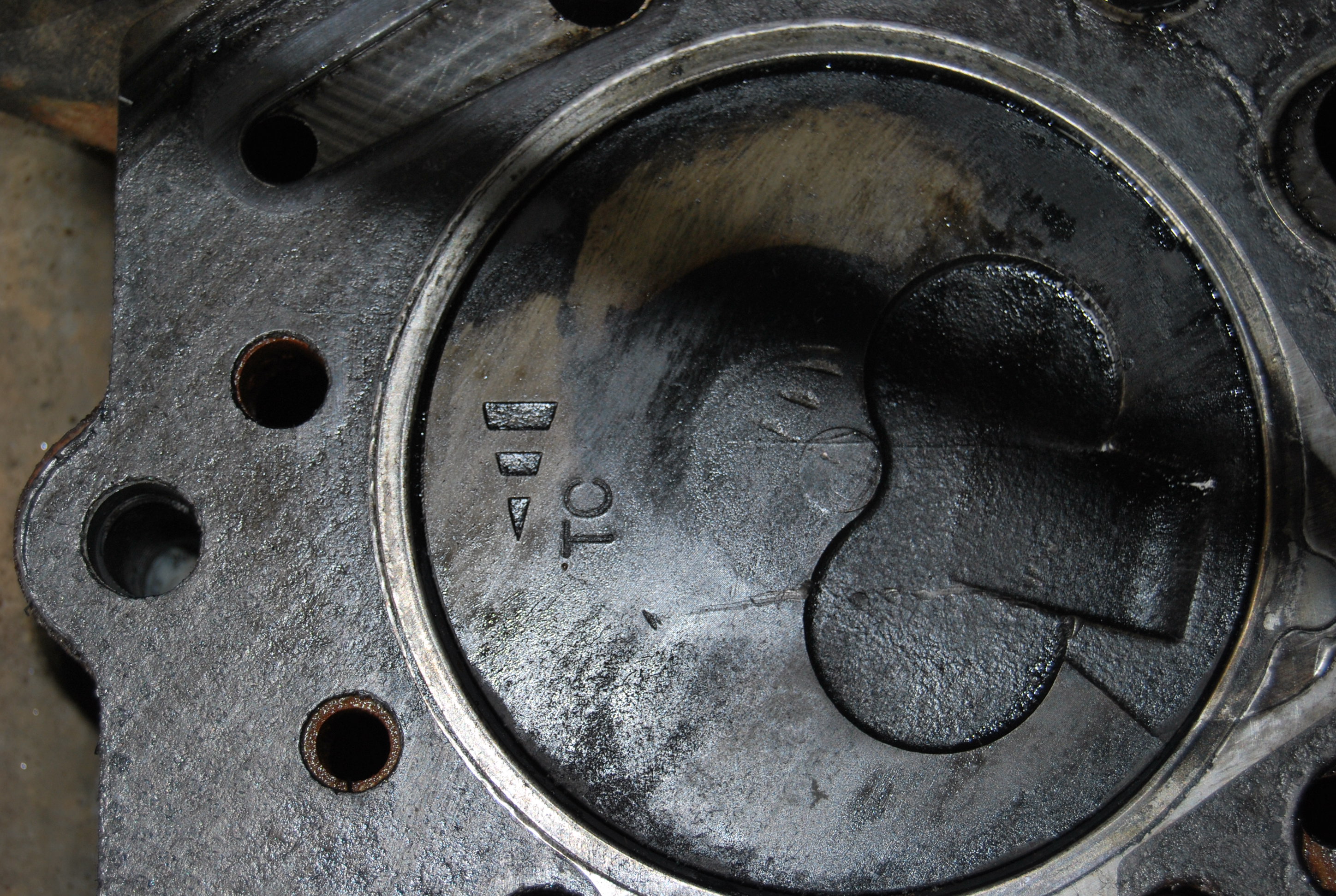 Фил, поршневая правильно стоит...вот и я с этим столкнулся...тож подумал, что меткой "углубления" называются...а когда поставил, то масляная галерея с форсунками несавпадают))))