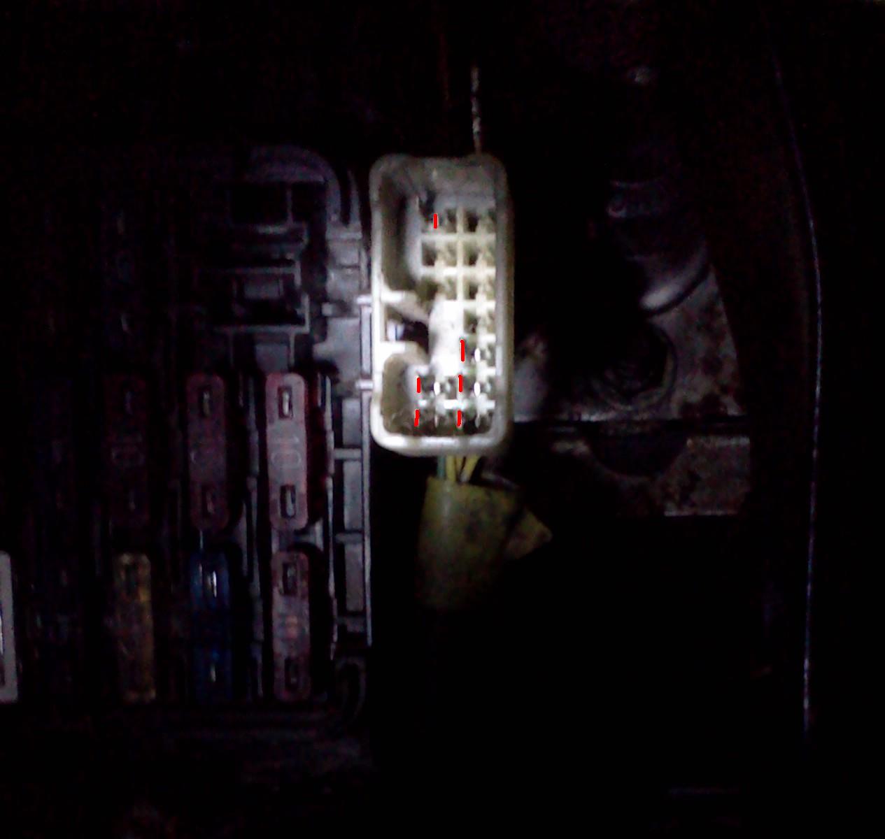 как и обещал, вот фото диагностического разъёма в моём авто. красным пометил имеющиеся контакты.
