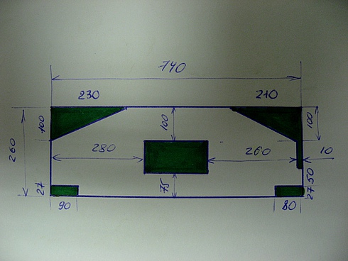 На счет не симметрична это да, поэтому у меня мотор получился чуть левее, но он вполне влез, а сам барабан ролики и крепления по центру площадки, думаю это понадежней (нагрузка более равномерная)