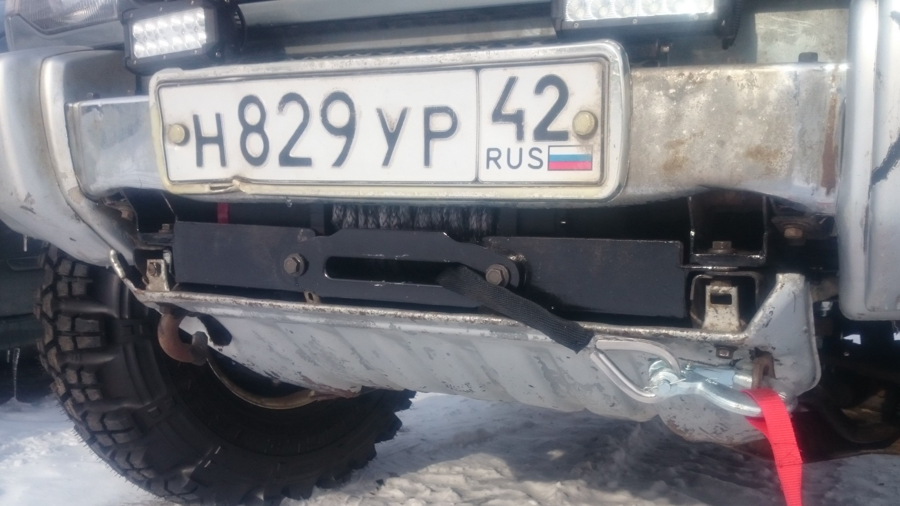 А на чем площадка под лебедкой держится? Не на бампере случаянно?