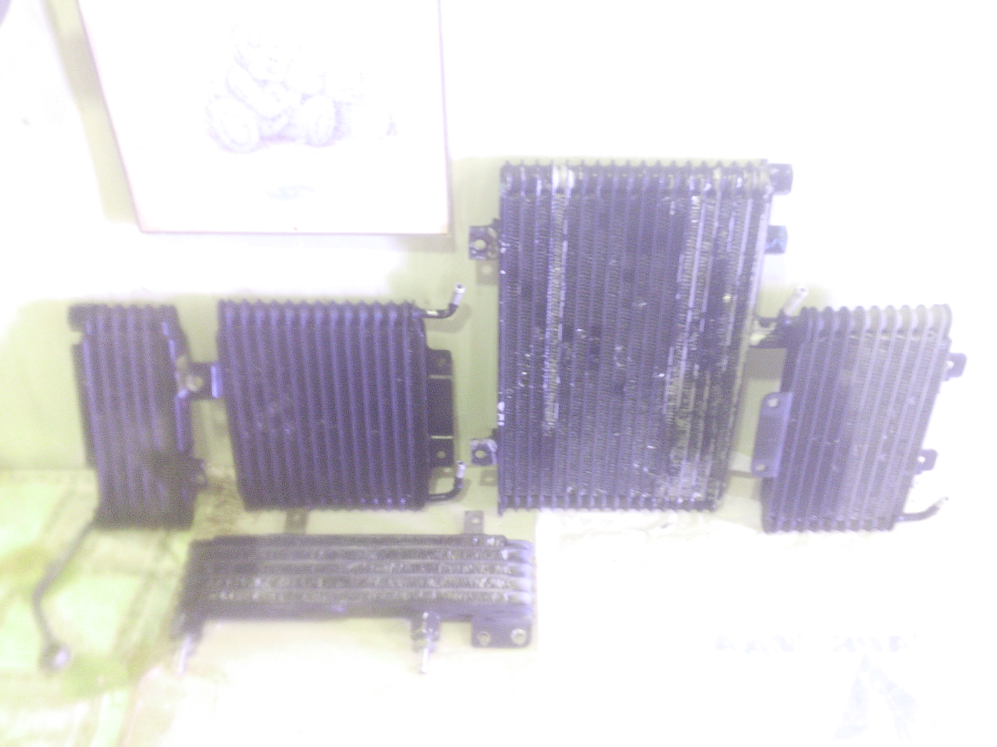 Слева на право: Радиатор масла движка от П2 6ж72, Радиатор коробки от аутлендера 3.0, Радиатор масла движка от старого Л200, Радиатор коробки от П4. И внизу радиатор масла движка от П4